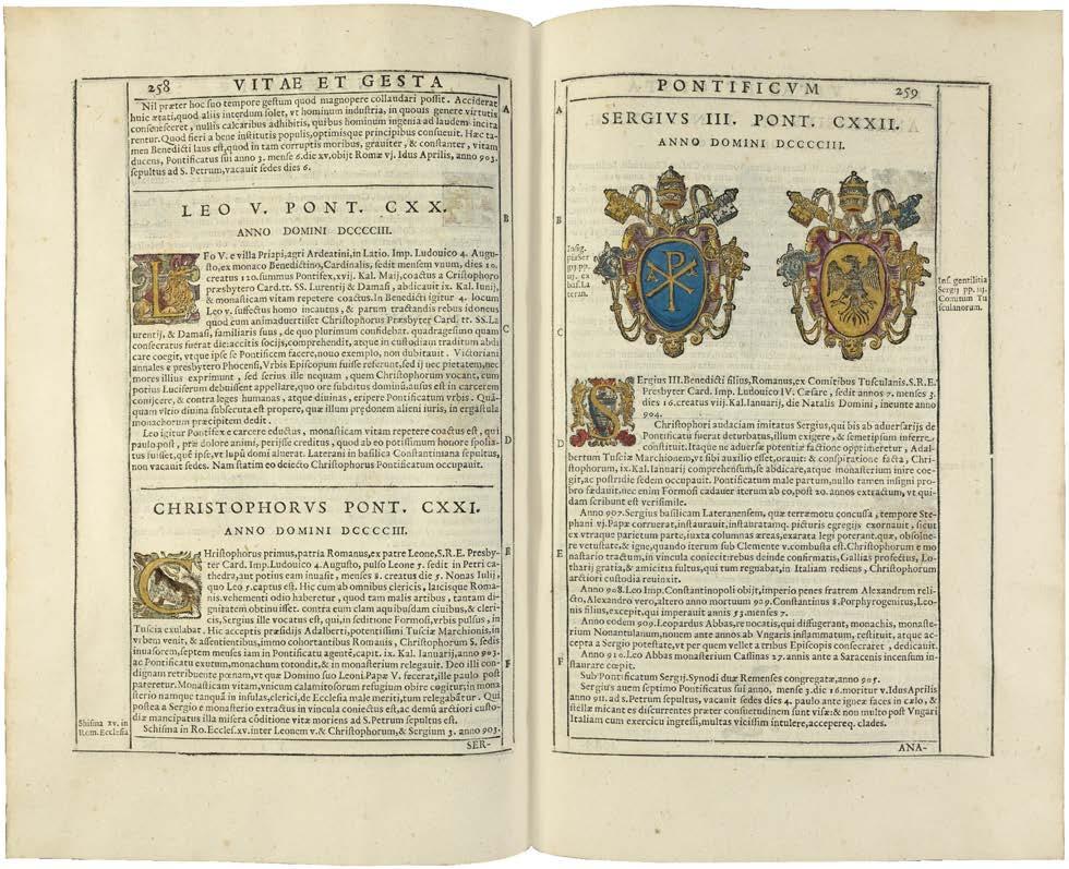 100 Leben und Taten der Päpste von Ciaconius: Das mit über 1.000 in Gold, Silber und Farben illuminierten Wappen ausgestattete Widmungsexemplar für Papst Clemens VIII. von 1598-1601, aus der Sammlung des Earl of Rosebery und von Roger Peyrefitte