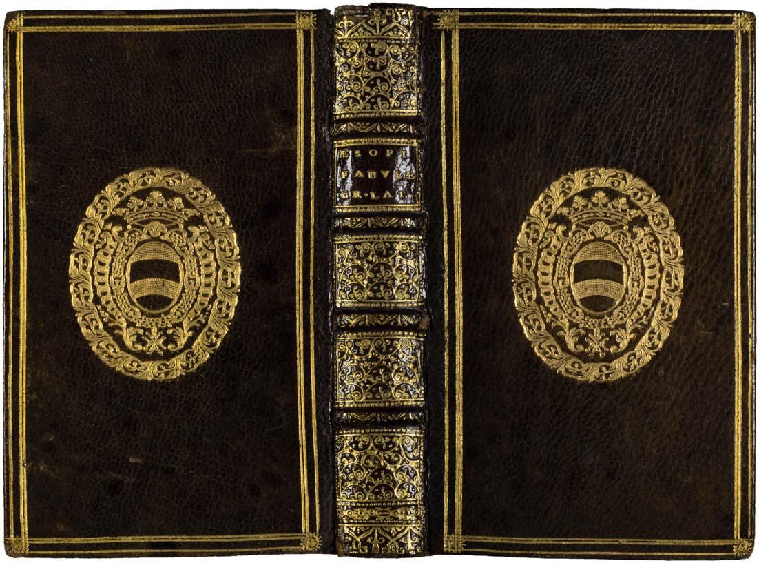 Provenienz: Auf der Titelrückseite in Gold, Silber und Farben eingemaltes Wappen: Drei silberne Pfeilspitzen auf blauem Grund, dazu die Devise »Tela praevisa minus nocent«, = Wappen von Jean Prévot, Monnayer à Dijon (Lartigue – Pontbriand 26245). – Auf dem Titel: »Guyette Diaconus 1759«.