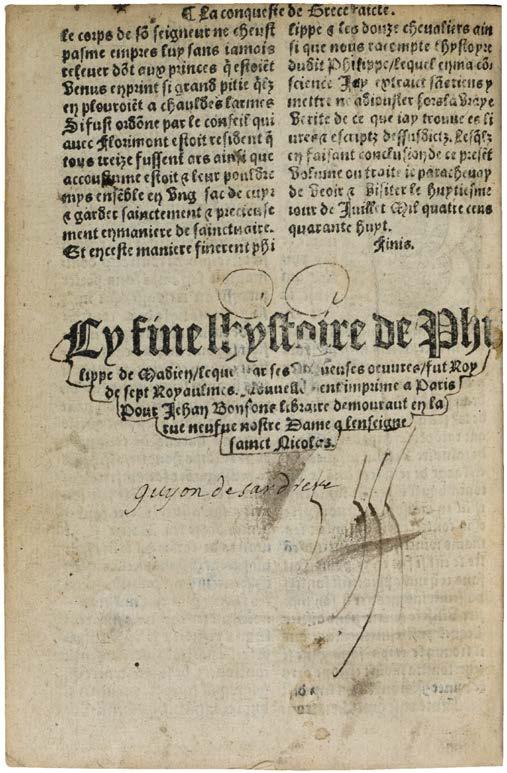 80 Eines von zwei bekannten Exemplaren dieses Ritterromans von 1543(?): das Exemplar Guyon de Sardière – Duc de La Vallière – A. A. Renouard – Firmin-Didot