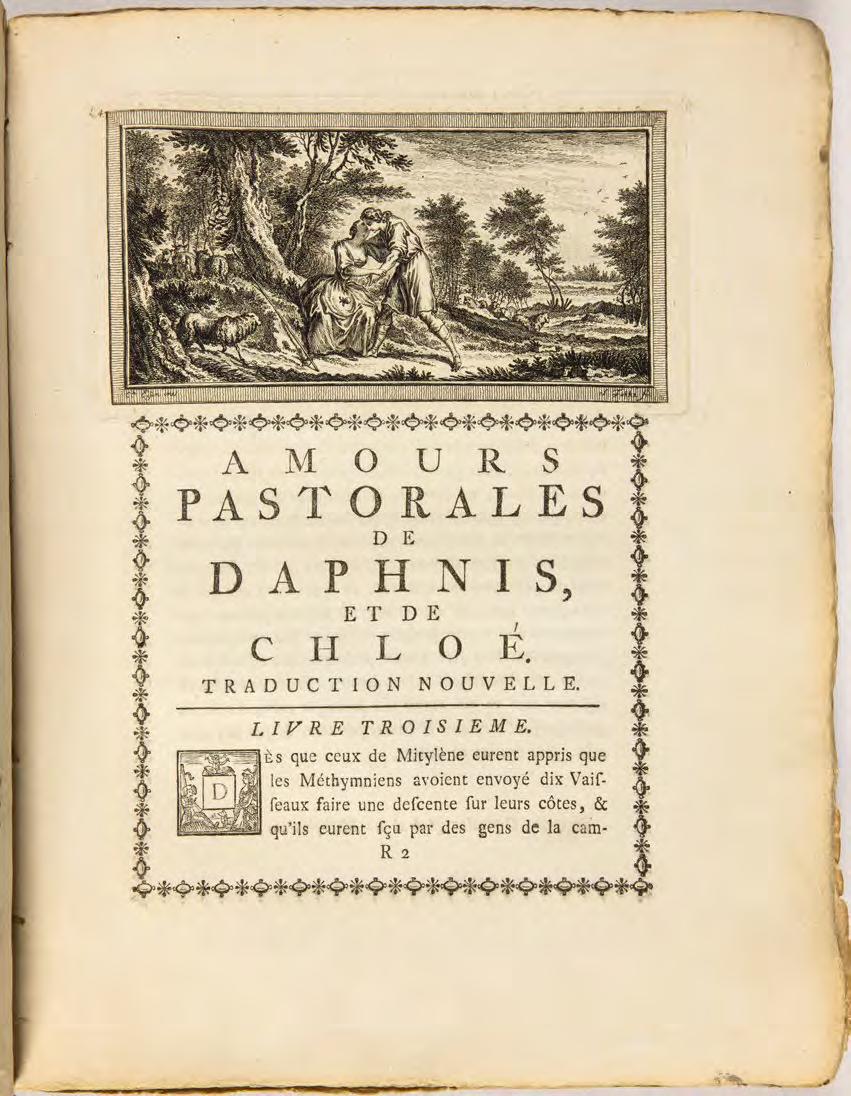 Unser Zeitabschnitt ist jener, in der der Roman endgültig aus der Nische der Gelehrtenliteratur heraustritt und sich ein wesentlich breiteres Publikum, bestehend aus einer die gehobene literarische Unterhaltung suchenden gebildeten Leserschaft, zu erobern beginnt. Die Übersetzung Amyots machte den Zugang zum Werk auch jenseits altsprachlicher Fertigkeiten möglich und setzte lediglich die Bereitschaft voraus, diesen Text in dem schon damals etwas antiquierten Französisch des 16. Jahrhunderts zu lesen. Dieses allerdings verlieh dem sprachlichen Stil seinen besonderen Charme, den Goethe noch zu schätzen wußte, zumal diese exzellente Übertragung selbst schon zu den literarischen Klassikern gezählt werden darf. Die abenteuerlich-amouröse Erzählung von dem im Hirtenmilieu heranwachsenden, sich über viele Hindernisse hinweg immer mehr liebenden, begehrenden und schlußendlich glücklich zusammenfindenden Paar von hoher Abstammung ist offensichtlich bei der Leserschaft im Zeitalter des Spätabsolutismus und der Aufklärung, aber auch noch und gerade in der Revolutionsära, auf sehr fruchtbaren Boden gefallen. Diese Leser erwarteten allerdings nicht nur niveauvolle Lektüre, sondern wollten das Gelesene auch visuell erleben, weshalb die Bebilderung durch Tafeln, Frontispize, Vignetten und weiteren Buchschmuck im 18. Jahrhundert zur Selbstverständlichkeit fast aller Longus-Ausgaben geworden ist. Schon von Beginn an konkurrierten gleich zwei Zyklen miteinander, wobei der eine, verknüpft mit dem Namen des leibhaftigen Regenten von Frankreich, Philippe II . de Bourbon, Duc d’Orléans, natürlich viel größere Popularität erringen konnte und sich gleichsam wie ein roter Faden durch die Ausgaben des 18. Jahrhunderts hindurchzieht, in