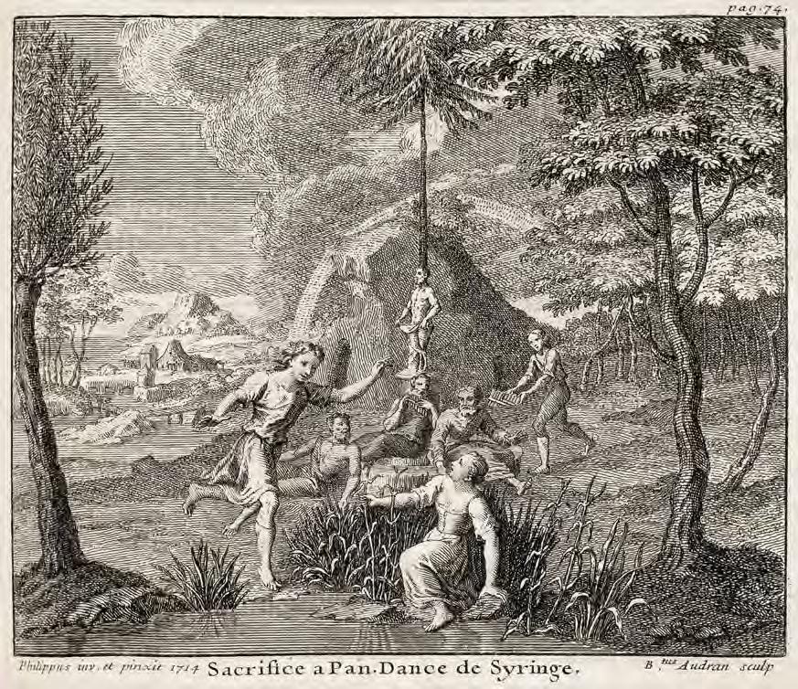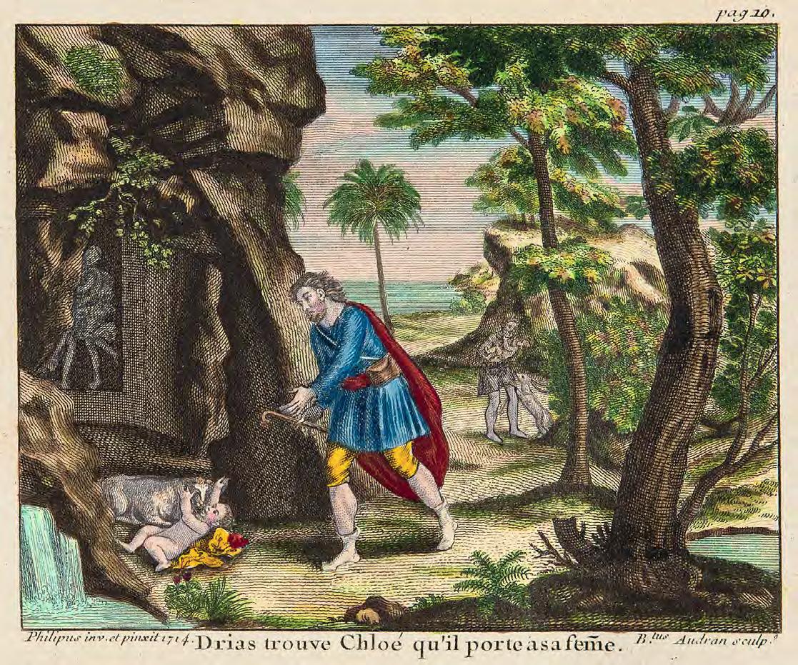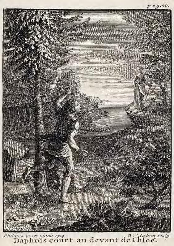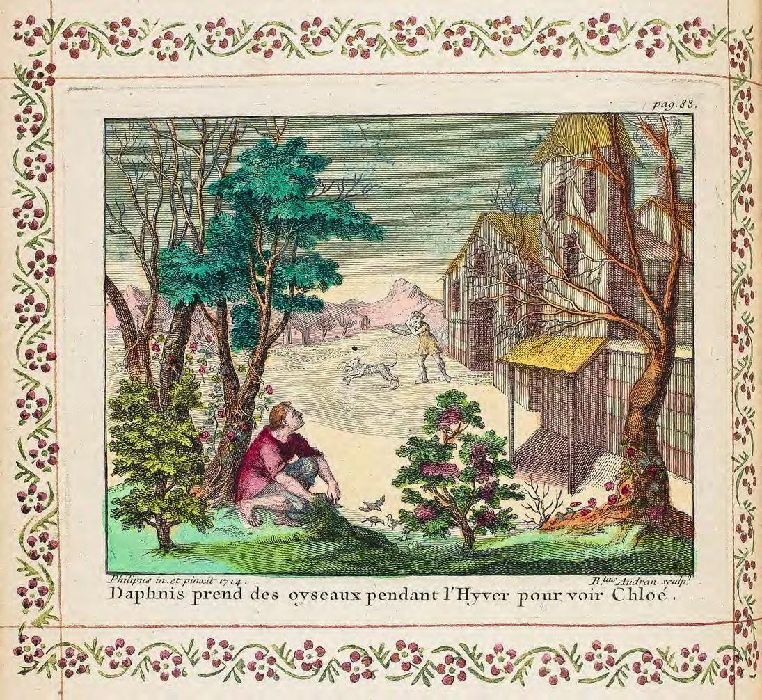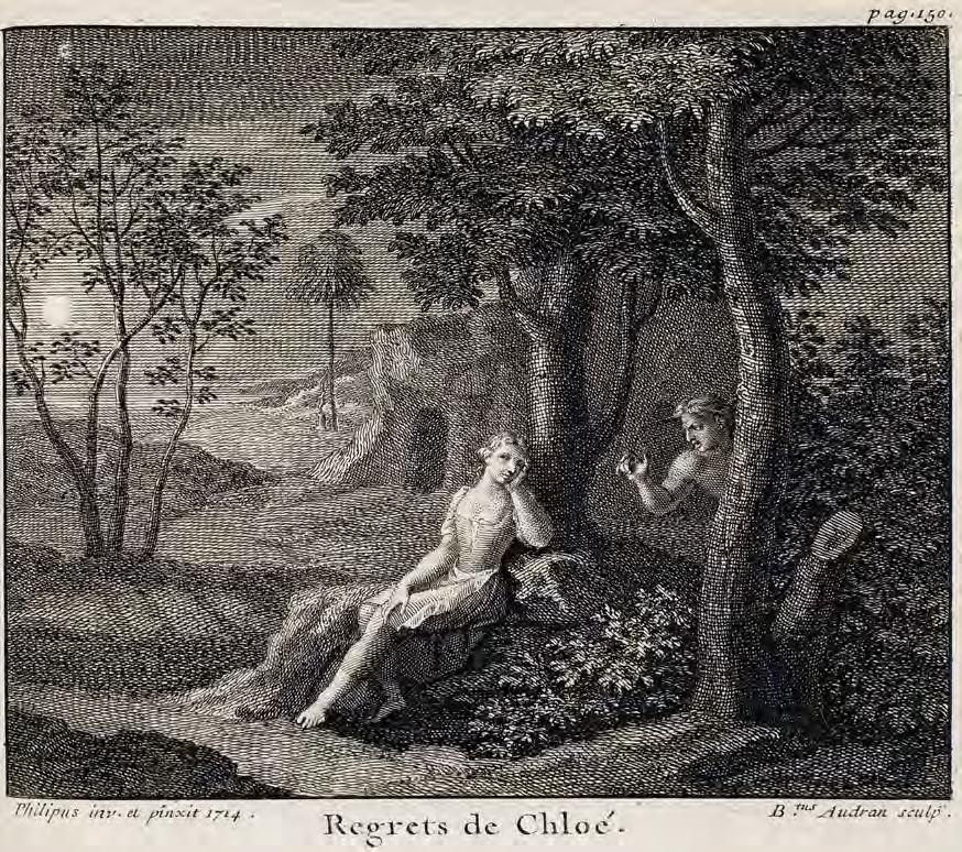 Da platzt in die „Niemandsbucht“ des zweiten Jahrzehnts, an dessen Ende Watteau, dunkel leuchtendes Versprechen, aus Versehen stirbt, eine Suite von 28 Stichen nach Gemälden des Régent Philippe d’Orleans, mit der fortan die Ausgaben in der Lebenszeit dreier Könige sich überstürzen werden: eingegeben vom spätantiken Liebesidyll des Longus: Daphnis und Chloé.