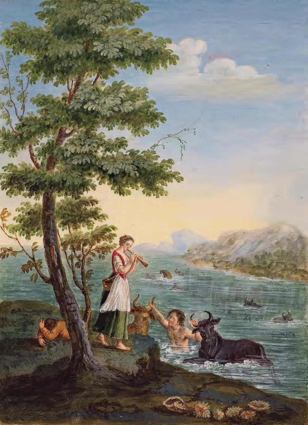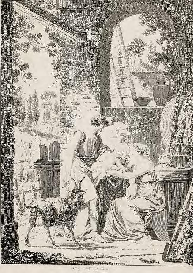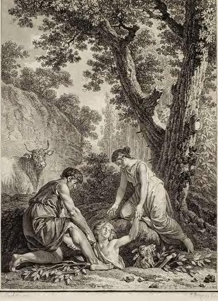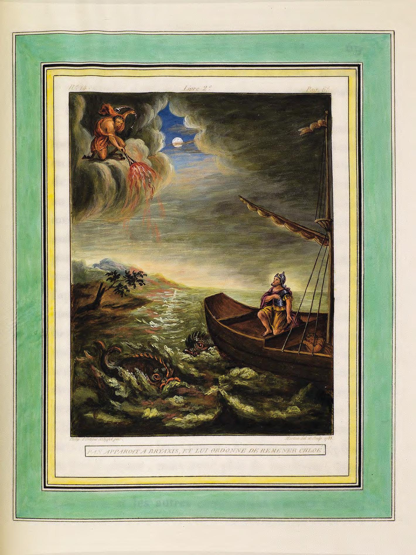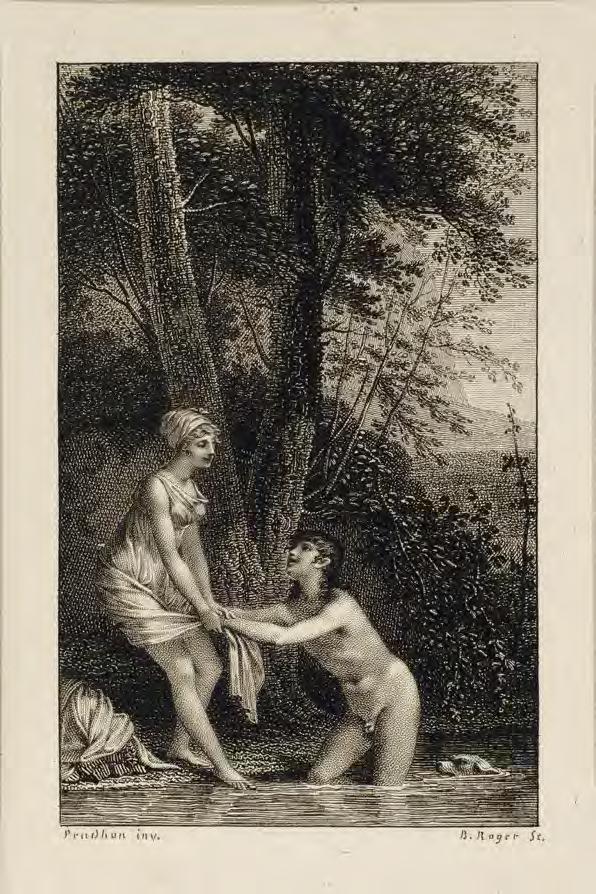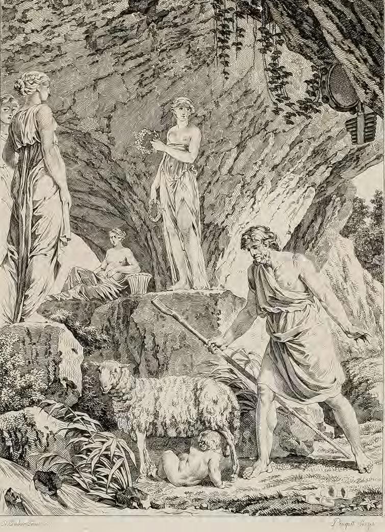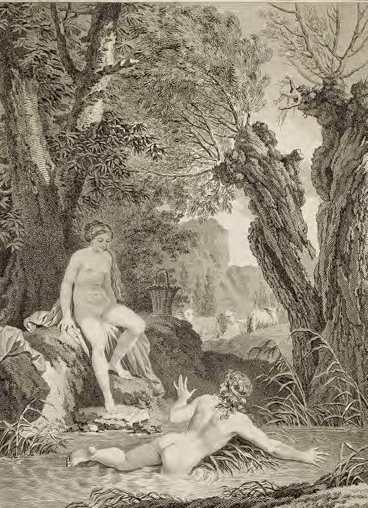 der Mitte des Säkulums sogar aufgewertet durch künstlerisch erstrangiges Rahmenwerk und Vignetten, woran Größen wie Eisen und Cochin maßgeblich beteiligt waren. Erst weit in der zweiten Hälfte des Jahrhunderts wurde diese Regentensuite allmählich durch Neues abgelöst. Gegen Ende des Jahrhunderts schufen schließlich bedeutende Illustratoren wie Le Barbier, Prud’hon und Gérard wirklich neue Darstellungen, auch hinsichtlich einer auf den seelischen Gehalt der Geschichte abzielenden Interpretation, die darin ihrer Zeit gemäßer waren und so in die Bilderwelt des 19. Jahrhunderts mit einer sich stark verändernden Ausdeutung hinüberführten. Die Faszination für das literarische Sujet und seine Visualisierungsmöglichkeiten nahm dabei keineswegs ab, im Gegenteil, sie sollte bis in die Moderne fortdauern, lag sie doch im Werk, nicht zuletzt im Sprachstil des Longus, bereits begründet, wie es Schönberger in der exzellenten Einführung zu seiner Neuübersetzung so treffend beschreibt: „Vor anderen Schriftstellern zeichnet sich Longos durch seine Bildhaftigkeit aus. Kaum ein Dichter vermag es, dem Leser ein Bild so deutlich und plastisch vor Augen zu führen. Man sieht Lokal und Personen geradezu vor sich … Der Klarheit des Himmels entspricht die Klarheit und Plastik der Darstellung“ [Schönberger, Longos, S. 253]. Die bildhaft-schildernde Sprache ist hierbei nur die eine Seite, die andere ist der Stoff selbst, der unmittelbar vom Wesen des Menschen, seinem Gefühls- und Seelenleben, erzählt und daher geradezu prädestiniert war, Bilder und Bilderfolgen zu evozieren, die sich im Laufe der Geistesgeschichte, der Stile und veränderter Interpretationsweisen entsprechend gewandelt und ein ganzes Spektrum visueller Deutungsebenen durchlaufen haben – der gewaltige Bogen der Inspiration der Kunst durch diesen immer wieder faszinierenden und die Phantasie anregenden Text spannt sich von den Kupferstichen des Crispin de Passe im frühen 17. Jahrhundert bis zu den Photographien eines Karl Lagerfeld in unseren Tagen. Das hier behandelte 18. Jahrhundert ist nur ein Ausschnitt daraus, wenn auch ein sehr wichtiger. Doch was machte den Reiz, die Bedeutung sowie die gleichsam zeitlose Attraktivität und Wirkung dieses antiken literarischen Stoffes aus, und warum hat er gerade im Frankreich des 18. Jahrhunderts eine solche Blütezeit erlebt?