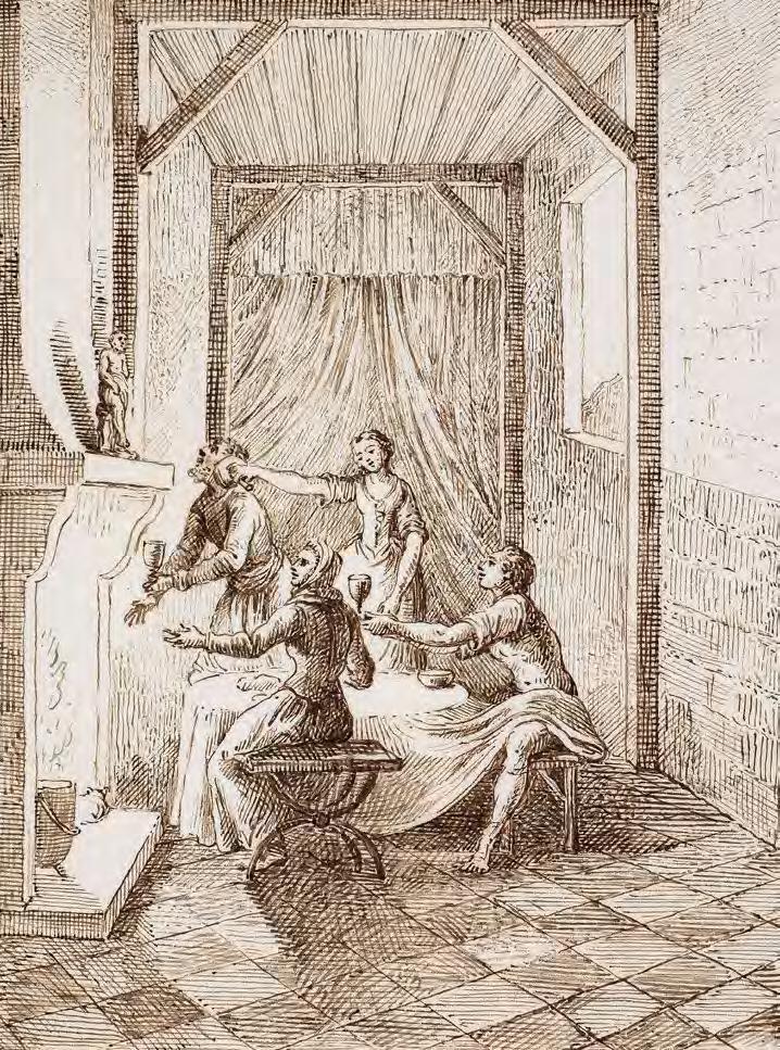 Paradox genug, beginnt die Buchillustration des siècle des lumières in Frankreich vor der Jahrhundertwende mit Ausläufern des holländischen Dunkels: Hierfür stehen die Namen Romeyn de Hooghe und Harrewijn, die ihre stachligen Radierungen über Lafontaine, Boccaccio und Marguerite de Navarre streuen und damit künstlerische Türsteher wie Henri Cause und Konsorten unschädlich machen.