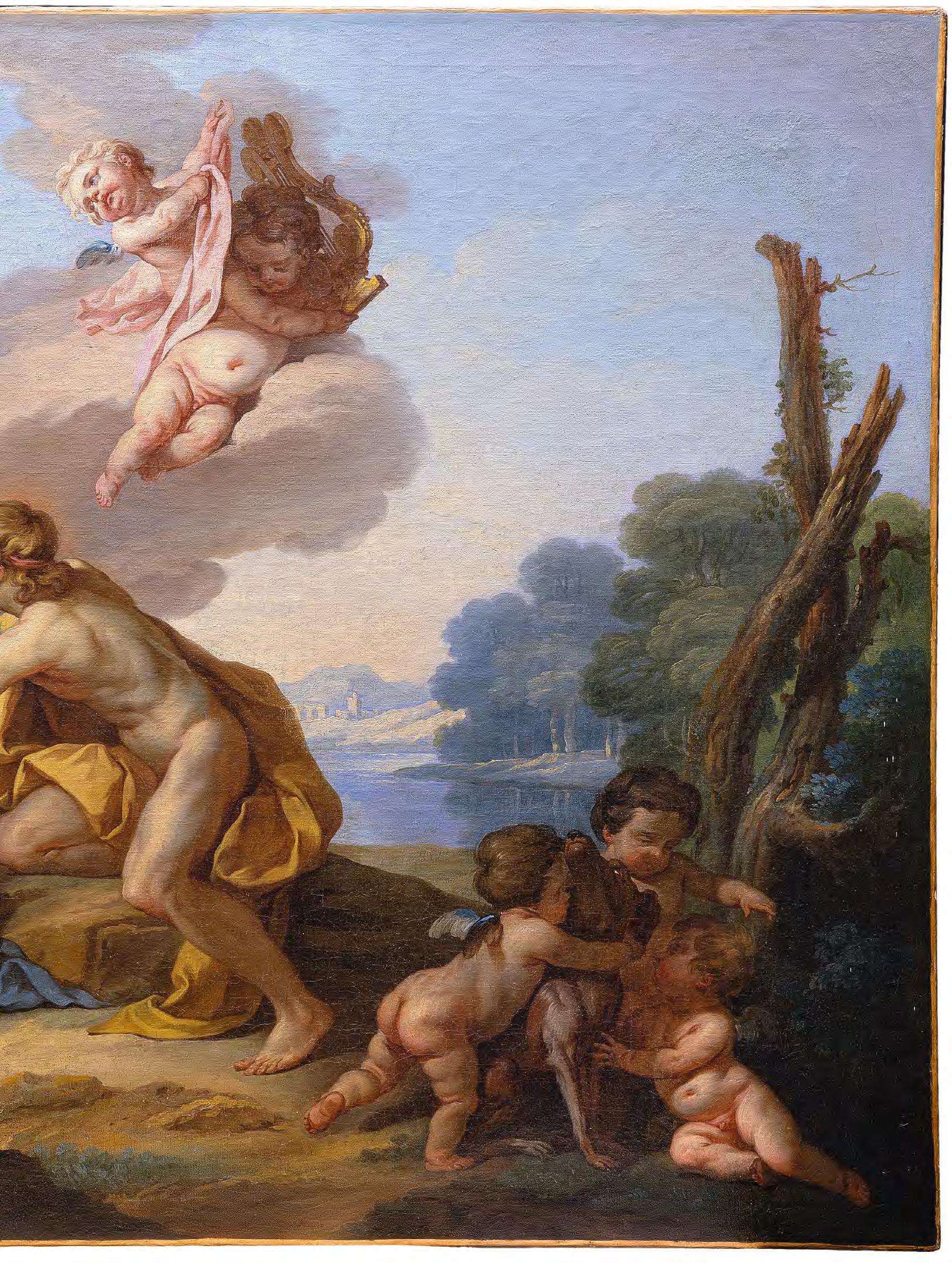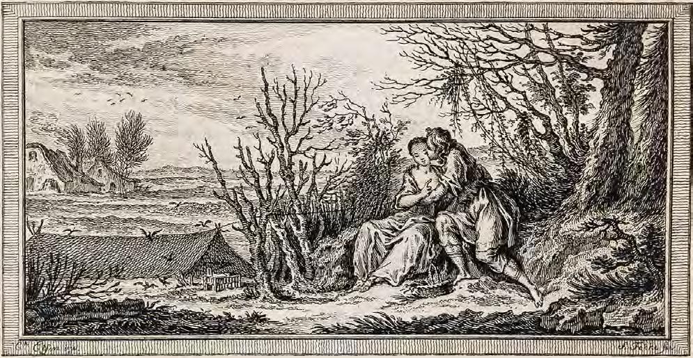 Hinzu kommt, daß die Sammler jener Generation nicht dumm waren: wie wäre der ununterbrochene Siegeslauf nicht nur der Ausgabe von 1718, sondern hin zu den unabsehbaren Folgen: 1731, 1745, 1754, 1757 usw., zuletzt noch dem Aplomb der Edition von 1787 sonst möglich gewesen… Nein, Philippe d’Orléans, untertänig gelenkt von Coypel und transformiert von Audran, hatte in seinem Ehrgeiz etwas bereitgestellt, das im Ancien Régime immer noch einmal zu sich kommen konnte, ohne Epochenrest. Tatsächlich bietet sich dem unvoreingenommenen Auge beim Betrachten der Folge Entzückung über die Maßen: das mit Delikatesse gebändigte Clair-Obscur vieler großer Querformate, die liebreiche Parteilichkeit der Figurensetzung gegenüber dem zurückweichenden Kokon der Natur, all die Freiheiten gerade noch zensurverträglicher Nacktheit , die dennoch unsere Urgroßväter nach Sekretierung rufen ließen (während sie im Stillen Nerciat und Chorier lasen, oder gleich de Sade). Vor allem wenn man es mit den frühesten, geradezu ins Relief sinkenden Abzügen zu tun hat, wie dies fast alle unsere Exemplare (III–XVII) bewähren, streift einen der „coup de foudre“, der sich bei Darstellungen wie dem einzigartigen Winterbild oder der Reigenanmut der Weinlese bis zum „süßen Delirieren“ Horazens steigern kann. Zuletzt vernimmt man in der vermeintlichen Beliebigkeit der Formatabfolge das Flüstern eines geheimen Sinns, der die Reihe mit zusätzlicher Bedeutung auflädt.
