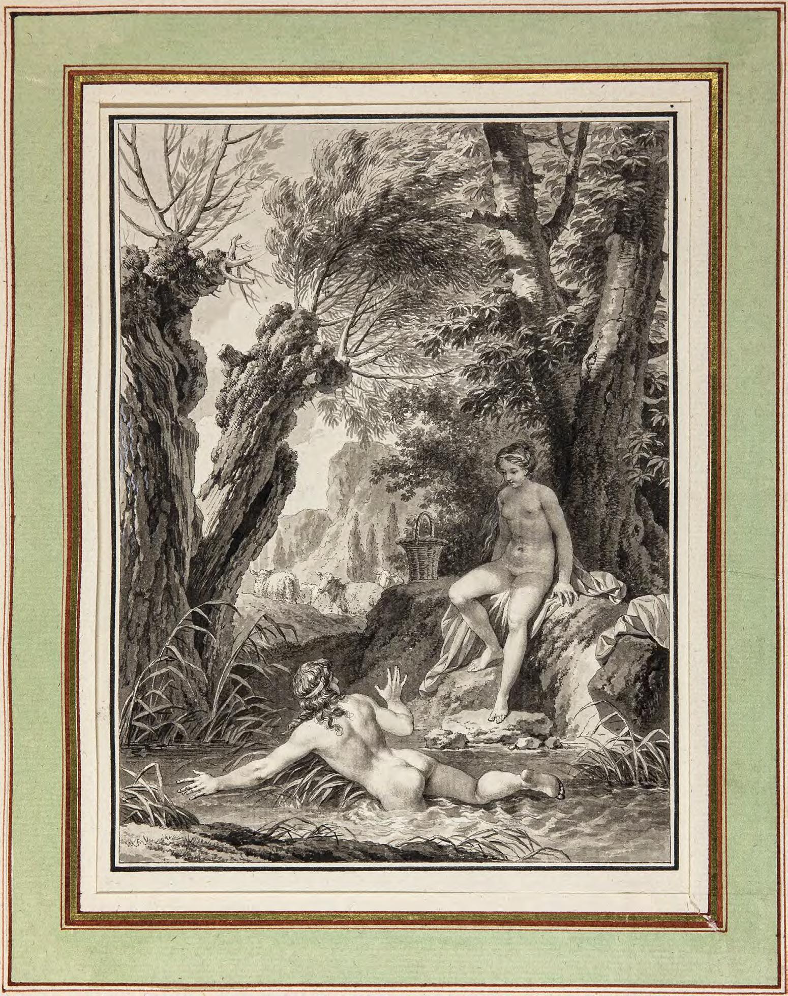 Der letzte Gipfel erwächst lange nach den Lauffeuern der Revolution, sieben Jahre nachdem die Geschäftsträger des Schreckens aufhören, die Tode zu zählen, es ist Didots Folio-Ausgabe von 1800 (– ein Embryo des Kommenden, das allerdings das ganz Andere sein wird: Bonnard, genau hundert Jahre später). Mit den Lavis von Le Barbier, augenliebkosend, den ans Geniale tastenden Erkundungen Baron Gérards, vor allem aber mit den drei Jahrhundertleistungen Prud’hons gelangt der Zug der Longus-Ausgaben an sein säkulares Ende, eine Höhle Ali Babas, ausweglos, und für immer. Die ganze Sammlung, wie sie hier nach hellen Freuden und manchen Hängepartien vorgelegt wird, ist, wie man leicht ersieht, ein Herzensding, eine labour of love, die den Anspruch erhebt, anhand eines einzigen Buchs den Gang der Bebilderung im fruchtbarsten Jahrhundert, dem französischen achtzehnten, zu skizzieren, vielleicht sogar ins Relief zu setzen.