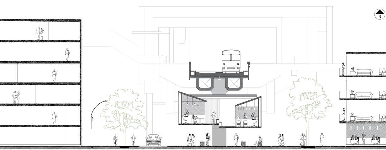 Para la formulación del ejercicio, se tomo como sitio de intervención la estructura del viaducto del metro en San Antonio. Esta idea orientada al aprovechamiento de esta infraestructura existente da como repuesta un estand comercial el cual comprende las exigencias del sector, como lo es la demanda comercial y al alto flujo peatonal.