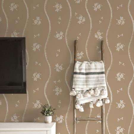 Wavy Striped Florals in brown and cream | Image 2