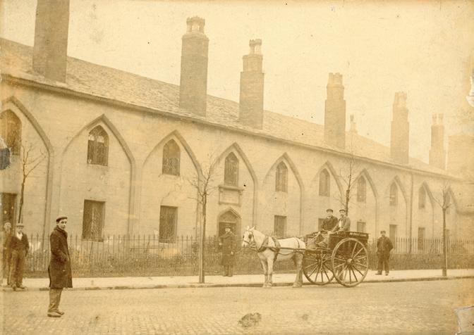 In 1776 the crumbling medieval construction was rebuilt by Joseph Pickford of Derby at the expense of King George III, creating a long, two storey building with twenty-three apartments on each floor, rooms for staff, kitchens, wash rooms and sitting rooms. The tall pointed arches of this phase of building can still be seen externally around the entrance and inside reception.