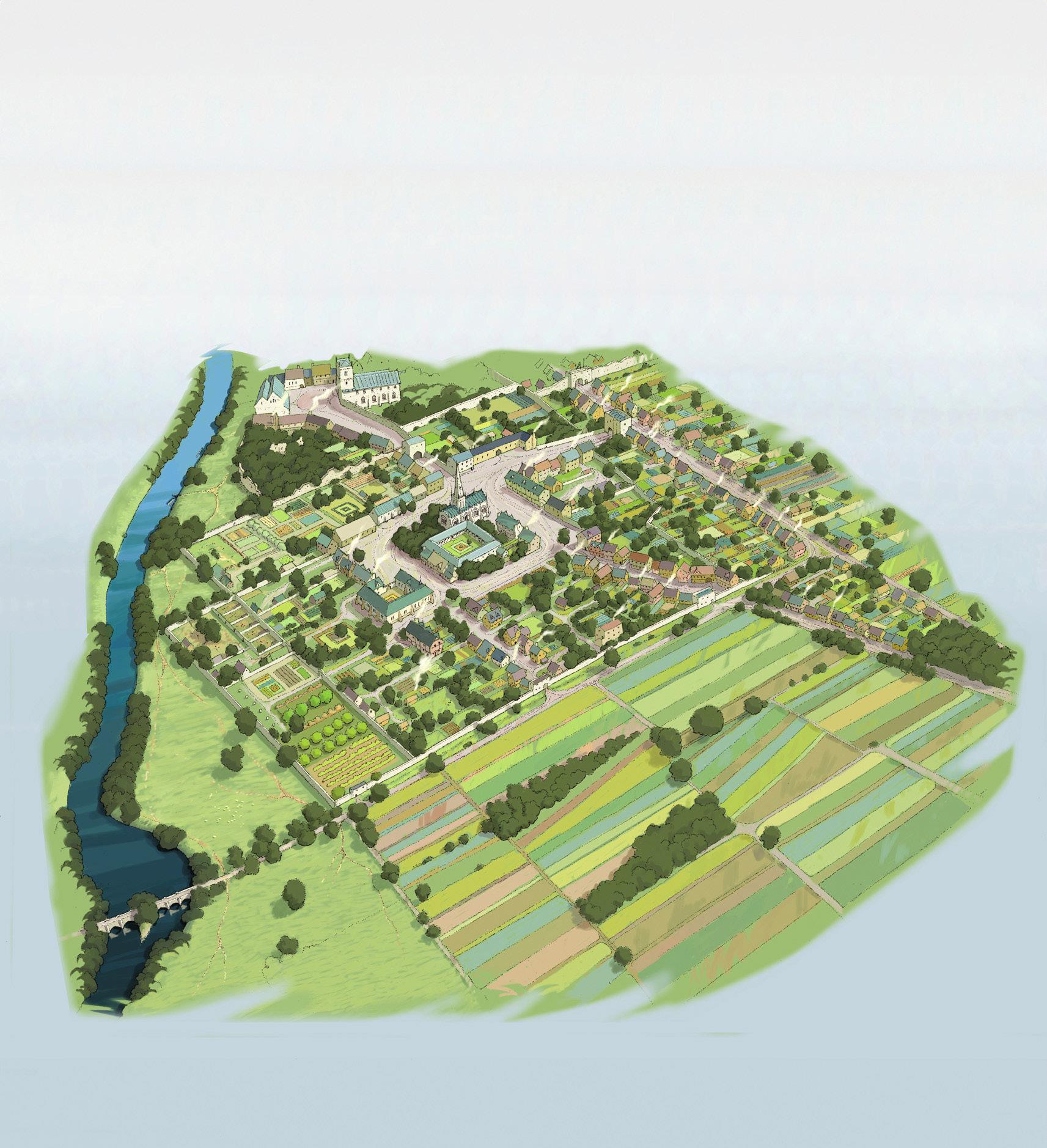 Cover Image: View of The Newarke from the South-West, after 1361, Illustration by John Cook | ©DMU Museum