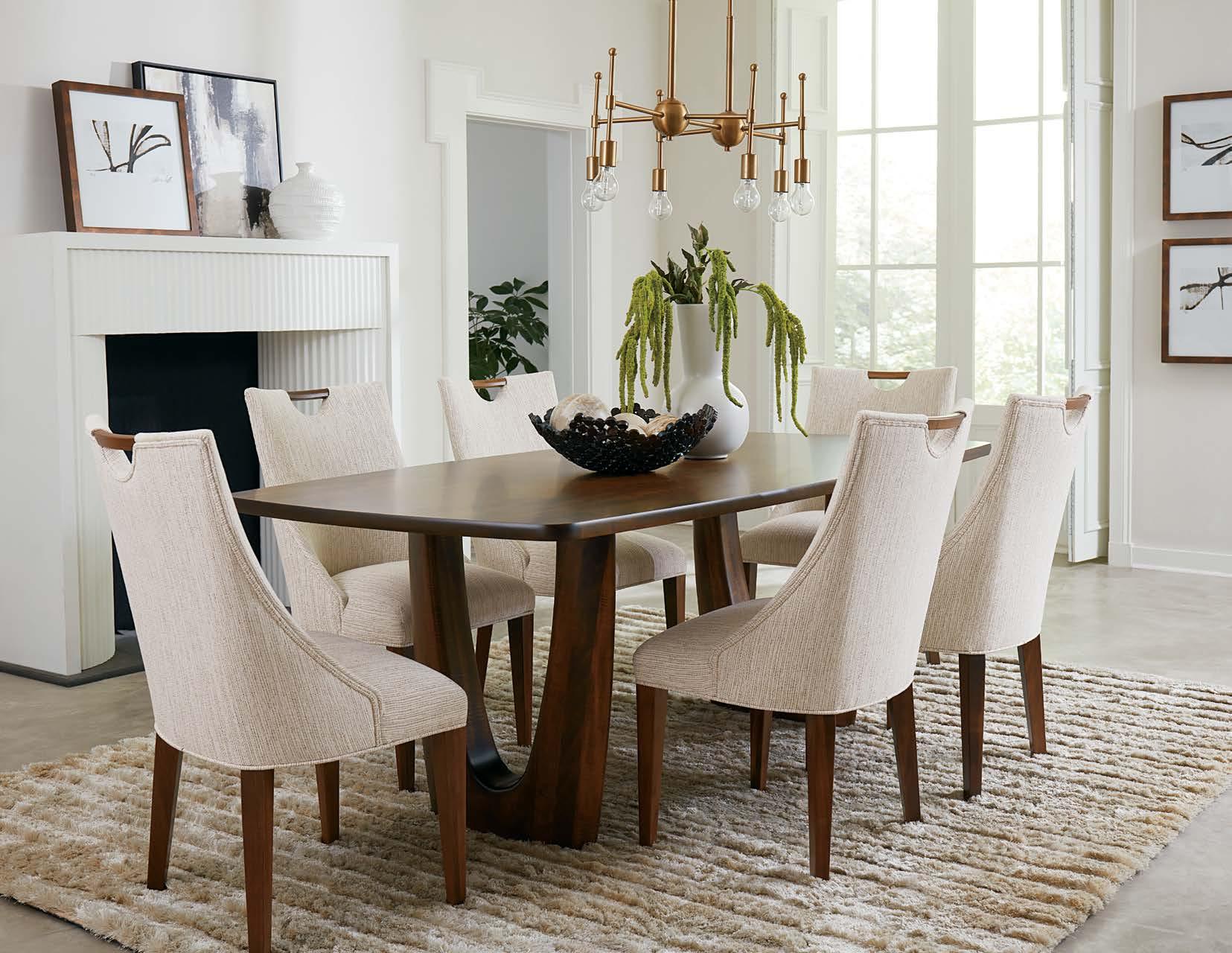 Shown with Wellbeck Chairs and Sinclair Server in Hard Maple with Driftwood Stain and Gunmetal Grey Metal (left page)
