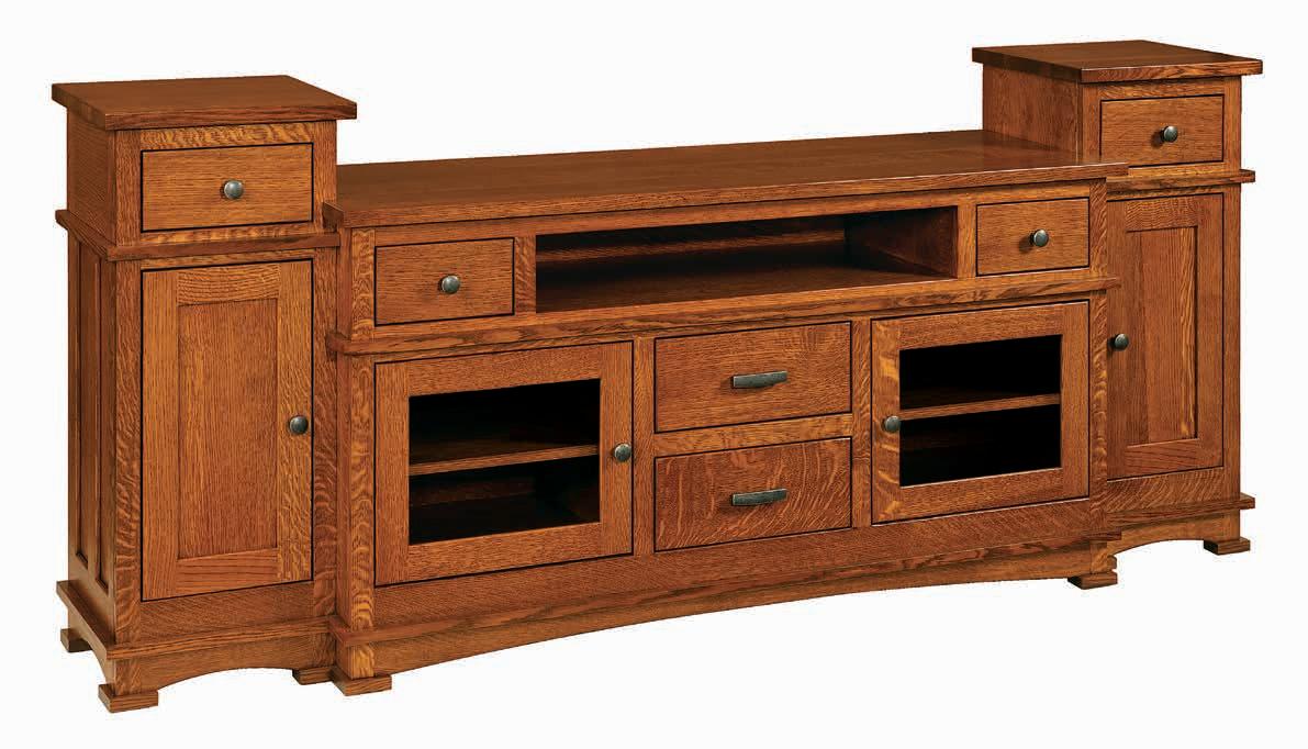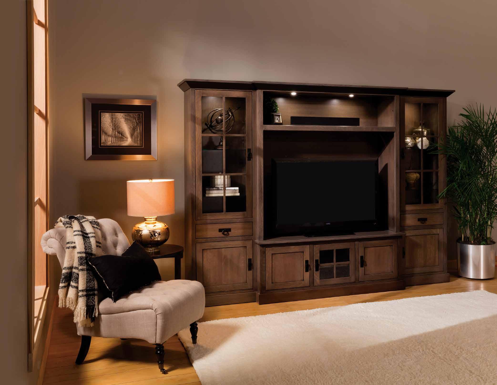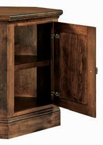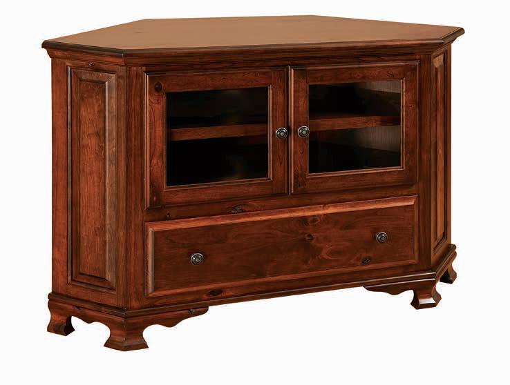make Casters make moving a TV Console or corner cabinet easy Concealed hinges add soft-close feature to all doorsWith proper care your furniture will provide years of enjoyment and will become family heirlooms. Maintain a humiditycontrolled environment. Your home should be kept in the 35 to 45% humidity range to prevent warping, cracking, and excessive expansion or contraction of raised panels, etc. Avoid placing your furniture in continued direct sunlight or near direct heat source such as furnace ducts or radiators. Clean with water using a soft sponge or cloth. Dry immediately with a soft cloth. Avoid polish that contains silicones.