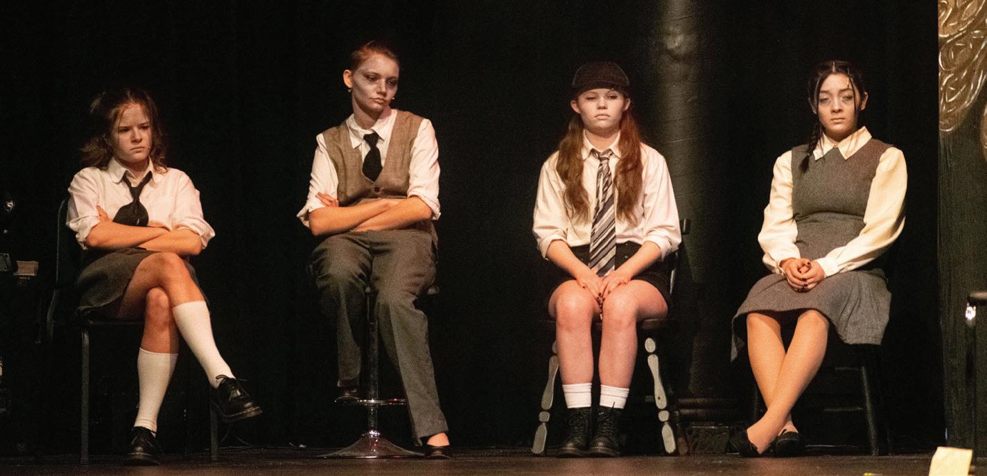 More than 40 Fine Arts students came together to create and perform the spring production, Eurydice by Sarah Ruhl. Eurydice, which ran from March 2 - 4, 2023, is the retelling of a classic Greek myth, shifting focus from Orpheus to his bride, Eurydice, who dies on their wedding night. During the production, the audience is transported to an underworld where stones talk and sing, water makes you forget, where fathers are trees and where the one you love might just come back to you.