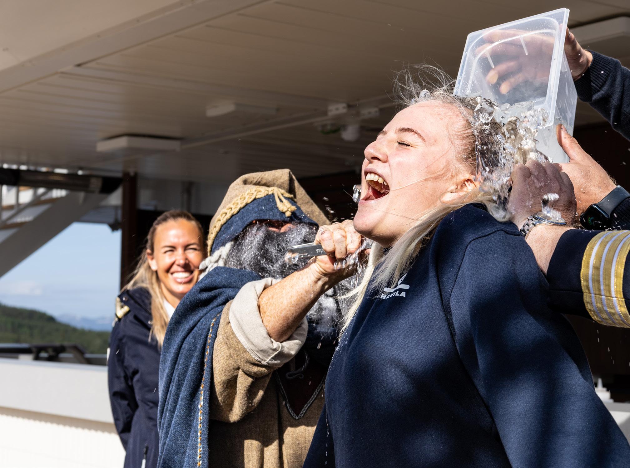 As we pass the Arctic Circle, we invite you out on deck to a playful baptism ceremony by Njord, the Norse god of the sea. During your voyage, you will also be invited to sample traditional Norwegian food.