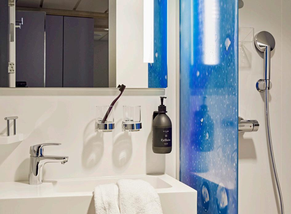 There are just two of these 45 m2 suites on each ship. These are exclusive Nordic-style suites with warm elegance and plenty of space. They feature a separate bedroom, and a bathroom with a bath and shower. In a suite that is equipped with everything you need, bathrobes and slippers are naturally included. The free minibar is refilled every day.