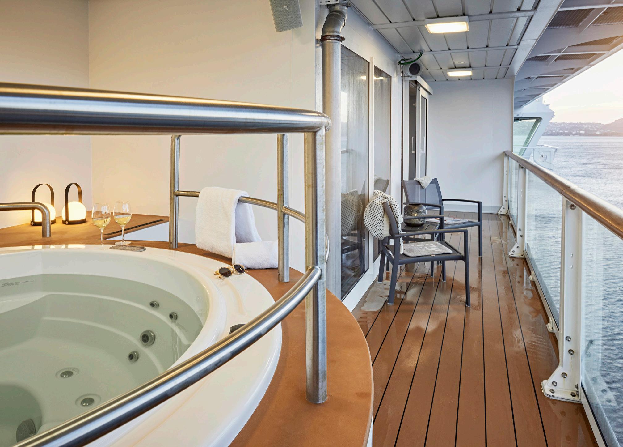 Your generously sized private balcony comes with a Jacuzzi. You can just lie back there and enjoy starry skies, the Northern Lights or the midnight sun.