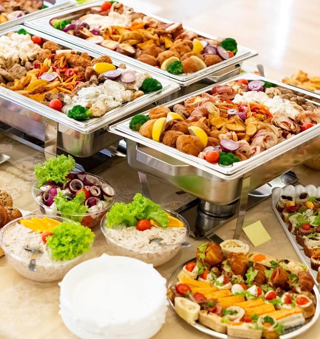 Tossed mixed green salad with ranch &house vinaigrette, potato salad, assorted fresh breads, Waldorf Chicken Salad, Tuna salad Black Forest ham, salami, assorted sliced cheeses, lettuce, tomato, onion, pickledpeppers, dillpickles Assortedcookies