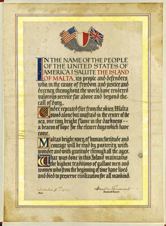 Franklin Roosevelt scroll, dated 7 December 1943 – highly symbolic date as it falls exactly two years after Pearl Harbour – at the Malta National Library, Valletta
