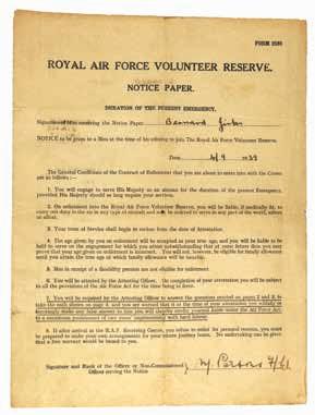 Ben Jinks’ enrolment in Royal Air Force Volunteer Reserve