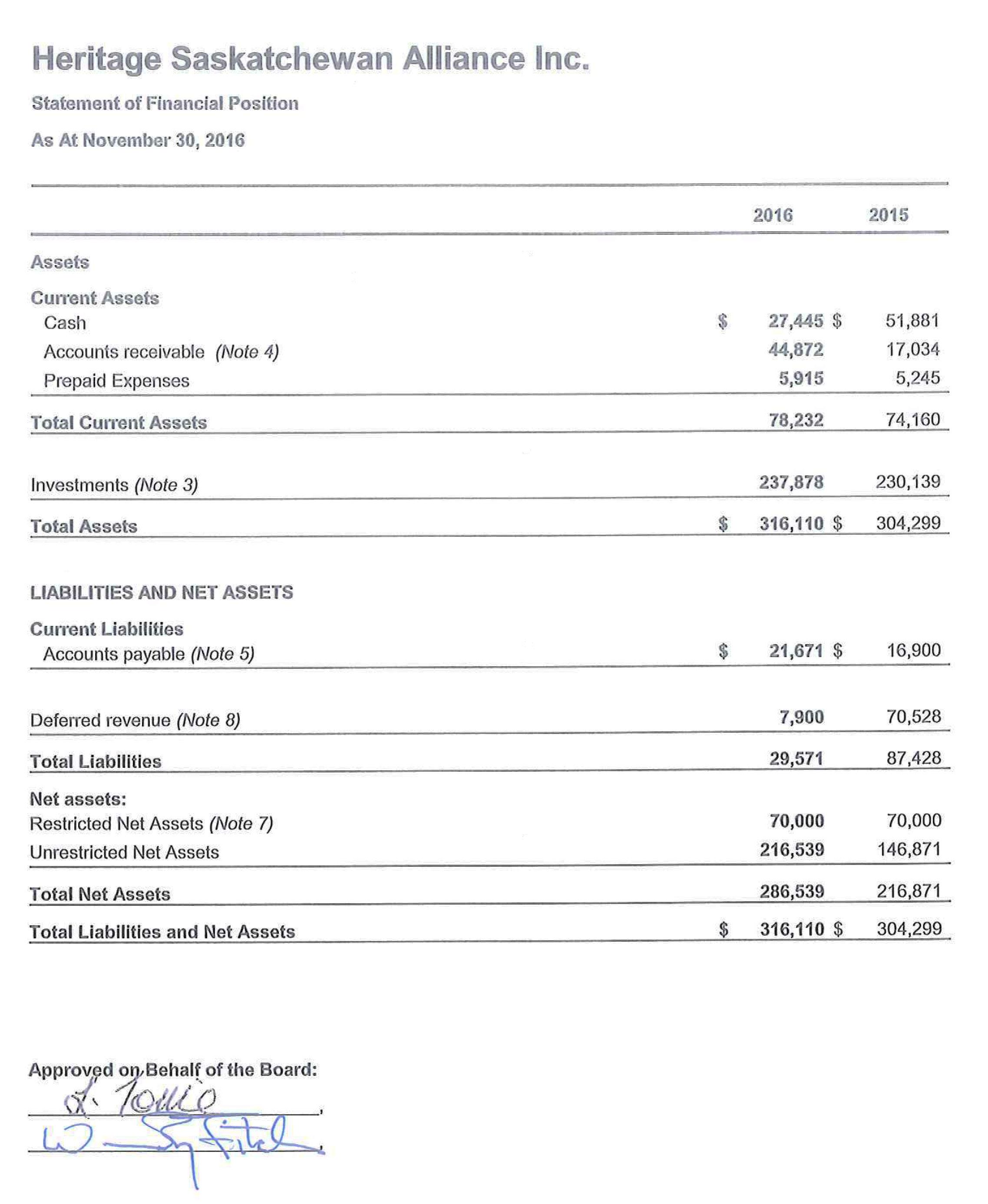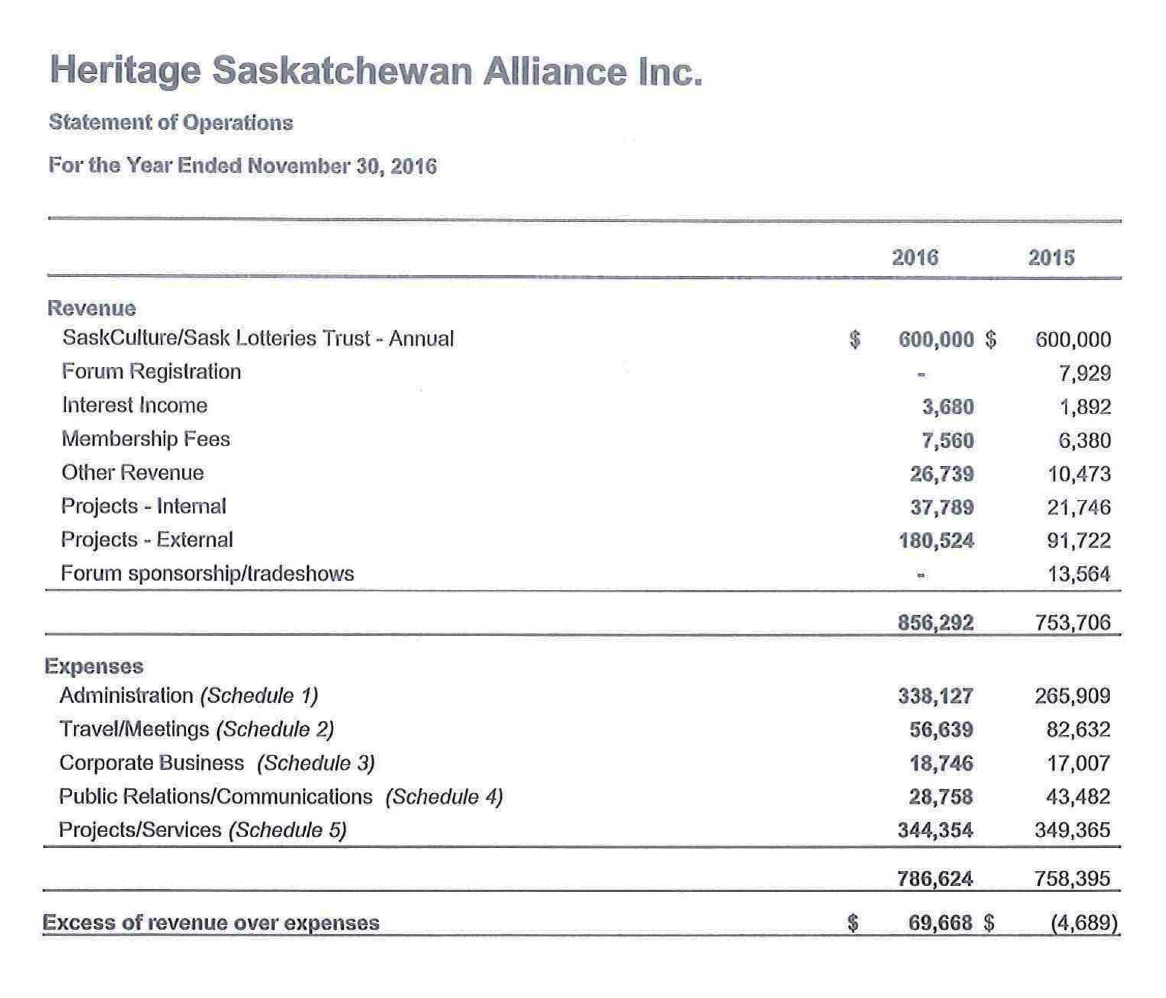 Please note that a condensed version of the audited statement has been included in this Annual Report. The complete audited statement is available from the Heritage Saskatchewan office upon request.