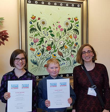 Young Citizens winners Ellery Nelson & Colby Hough with Katherine Gilks (Ottawa, Nov. 27, 2016)