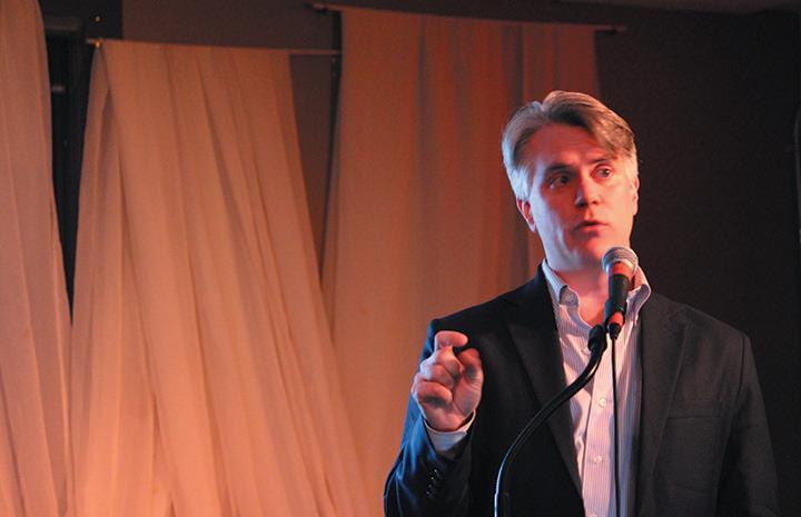 Frank Korvemaker and Ingrid Cazakoff confer at the Architectural Heritage Awards.