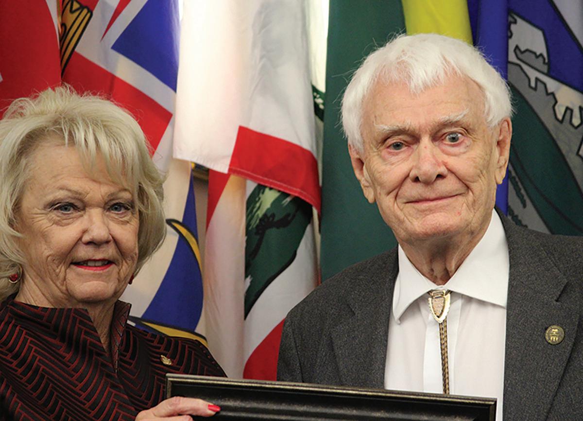 Her Honour The Lieutenant Governor of Saskatchewan Vaughn Solomon Schofield presents the Lieutenant Governor’s Architectural Heritage Award for Publication to Clifford Wiens.
