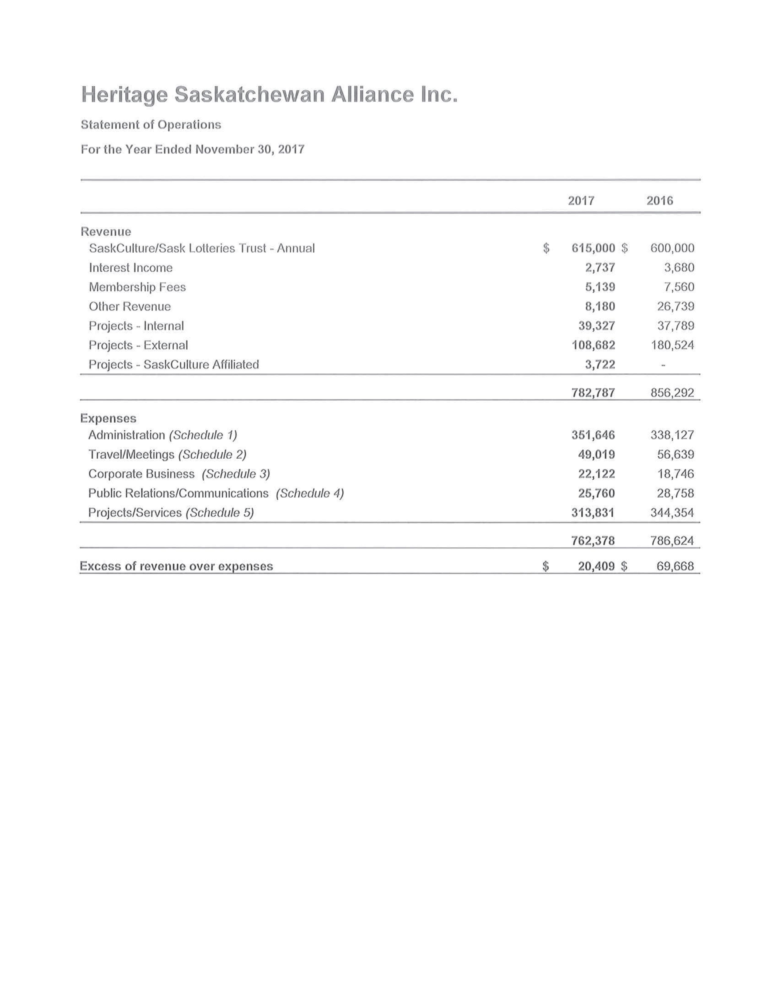 As well, I would like to thank SaskCulture for its ongoing support for Heritage Saskatchewan as its heritage community of interest. Quite simply, without the support of SaskCulture and the funding we receive from the Saskatchewan Lotteries Trust Fund for Sport Culture and Recreation, we would not exist.