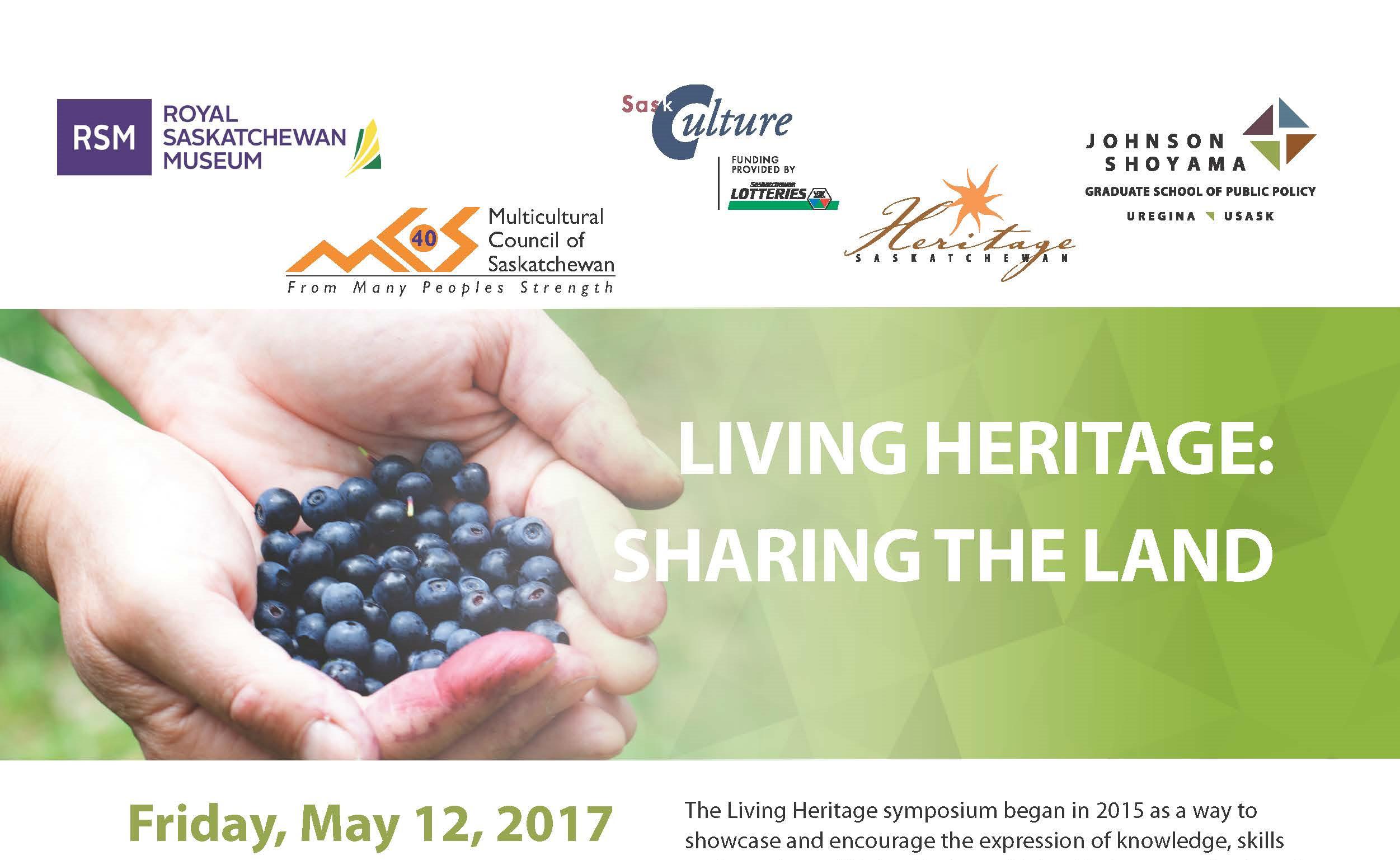 Our partnership with Johnson Shoyama Graduate School of Public Policy (JSGS), along with the Royal Saskatchewan Museum and the Multicultural Council of Saskatchewan, resulted in a joint symposium, Living Heritage: Sharing the Land, held May 2017, focussing upon how we balance cultural continuity with change and integration.