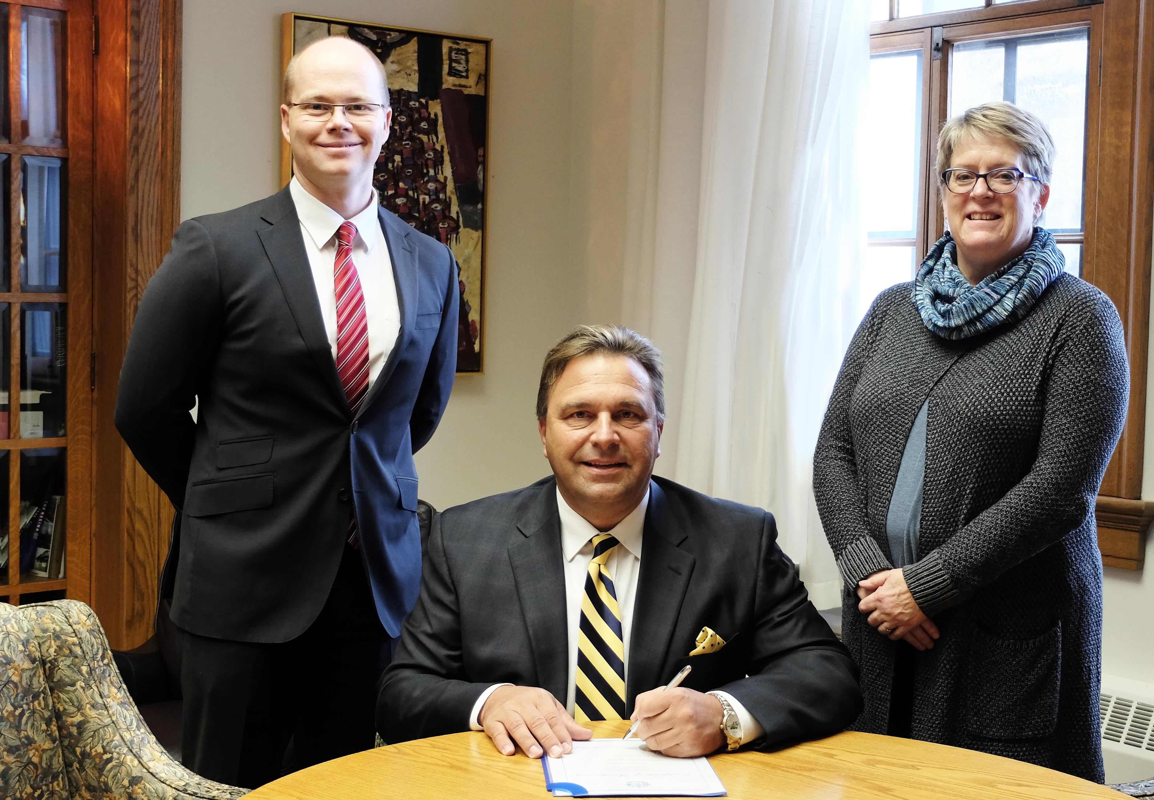 From left to right: Brad Taylor, Director of Saskatchewan Heritage Foundation; Minister Ken Cheveldayoff; and Ingrid Cazakoff, CEO of Heritage Saskatchewan