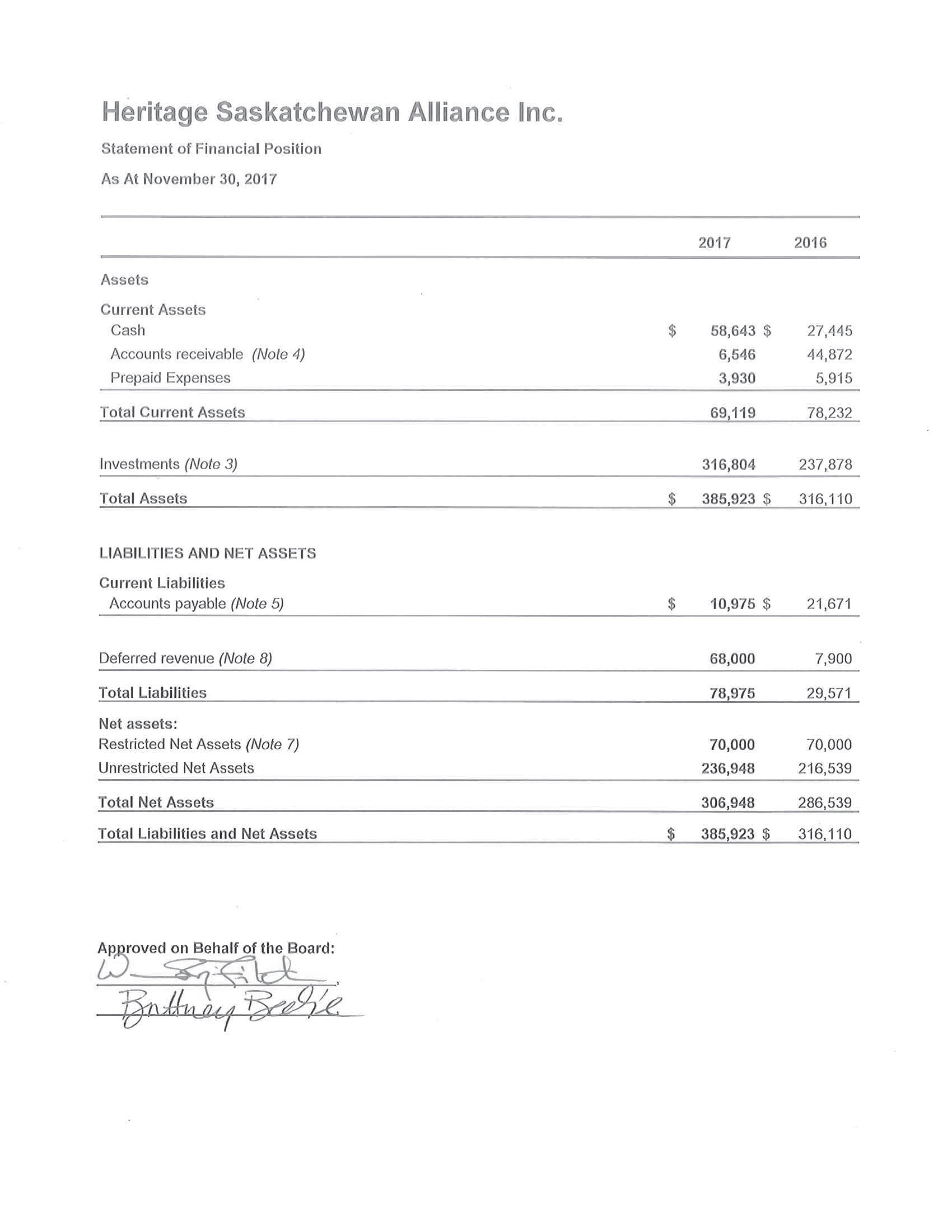 Heritage Saskatchewan Alliance Inc. was established as a non-profit corporation in October 2009