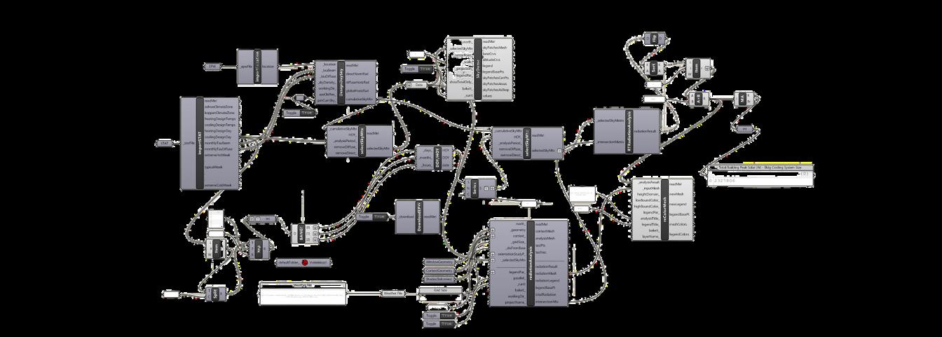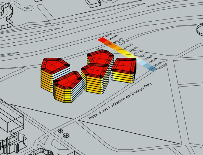 Melakukan analisa menggunakan ladybug suatu kawasan yang terbagi menjadi5bagianmassabangunandenganorientasiberbeda-beda Hasil analisatersebutdilakukanuntukmengetahuibesarbagianluarbangunan yang terpengaruh pada thermal bangunan tersebut ketika bangunan terkenaradiasimatahariperm2