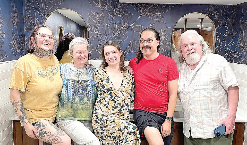Columbia Lodge members Ashley Aldridge, Amanda Hobbs, Cecilia Phillips, Jeremiah Arauco and David Lewis are pictured in the completely renovated women’s restroom of the Sons of Hermann Hall in Dallas. The renovation was funded by insurance funds from storm damage in June 2023.