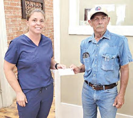 In June, Hondo Lodge donated to the Hondo FFA Booster Club. Pictured are Dr. Stacy Jacobs, Hondo FFA Booster Cub president and lodge President Bobby Tschirhart. The funds will help youth purchase project animals.