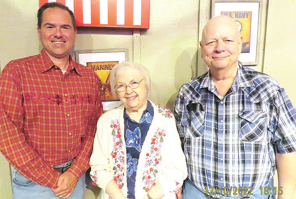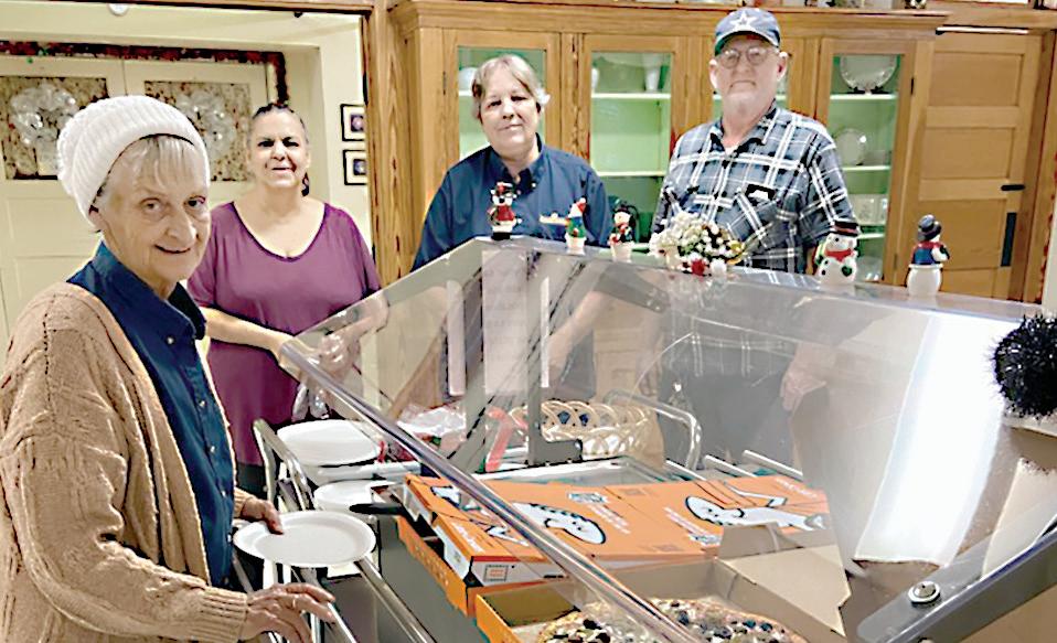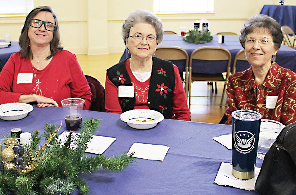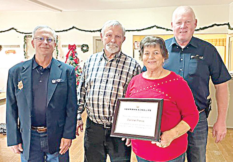 Richland Lodge hosted the annual Christmas party on Dec. 4. President Tammy Kelley, left, and Vice President of Member Benefits Cecily Kelly, right, presented Ruth J. Pfennig her 80-year membership pin. She has been a member since Sept. 13, 1942, and resides in Fort Worth. In observance of Make a Difference Day, the lodge collected donations for Gather-N-Give to help families in need. Accepting the donations were President Gail Wilhelm along with Bill Crisp.