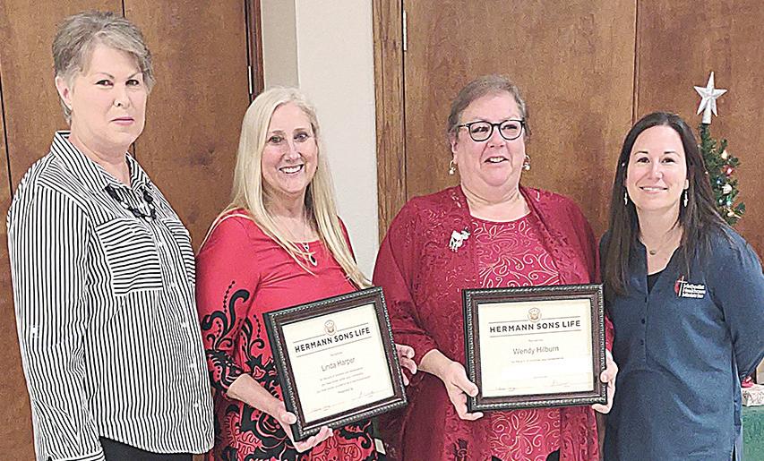 Jourdanton Lodge presented two Humanitarian Awards during the Christmas party. Pictured are, from left, President Valerie Craig, recipients Linda Harper and Wendy Hilburn and a Methodist Healthcare Ministries (MHM) representative. Linda and Wendy are both Wesley Nurses with MHM.