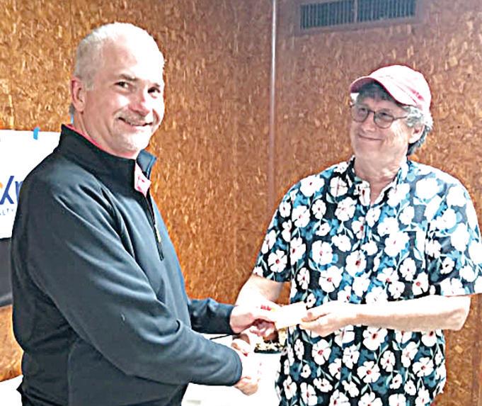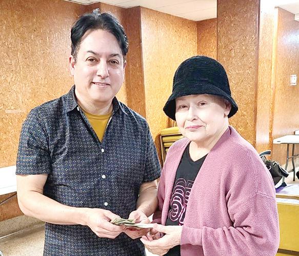 Anton Wenzel Lodge split-the-pot winner was Veronica Gallaway pictured accepting her prize from President Ed Elizondo.