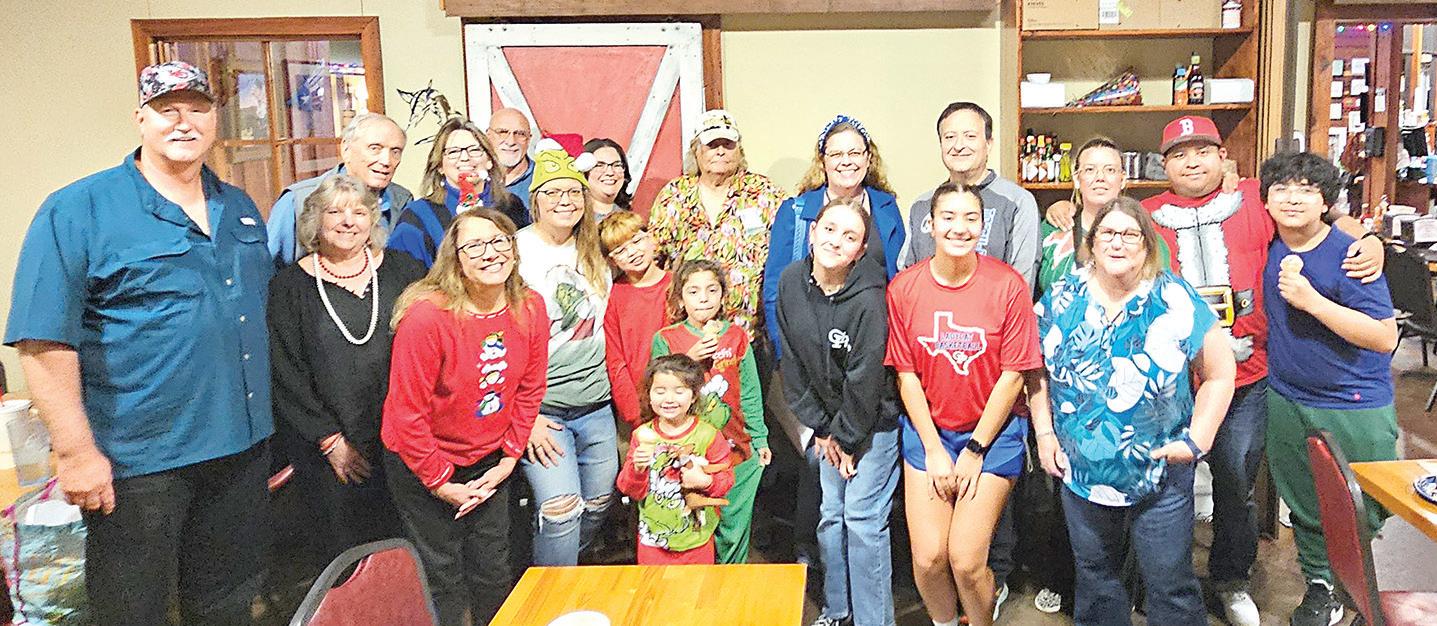 The Corpus Christi Lodge Christmas party was held Dec. 14 at the Butter Churn restaurant in Aransas Pass. Members young and old enjoyed visiting with Santa including, on right, special guests President and CEO Robin Czarnek and her husband Dave.