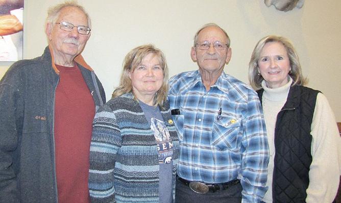 Solms Lodge presented membership pins during the January meeting. Pictured are, from left, President Russell Boss, 70-year membership pin recipients Joyce Lux, James Schmidt and Vice President of Sales Teresa Saathoff.