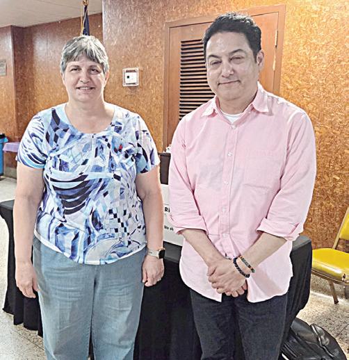 Dr. Carol Bielke, member of Vineta Lodge, won the split-thepot prize at the Harmonia Lodge May meeting. She is pictured with Harmonia Lodge President Michael Kraus.