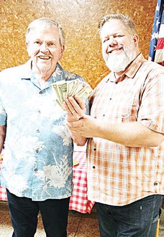 September split-the-pot winners at Harmonia Lodge were Thomas Kraus, left, and Bill Richard pictured with President Rene Kraus, center.