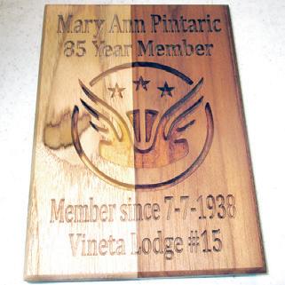 This 85-year membership plaque was presented to Vineta Lodge member Mary Ann Pintaric. The lodge thanks David Czarnek for making the plaque for the special presentation.