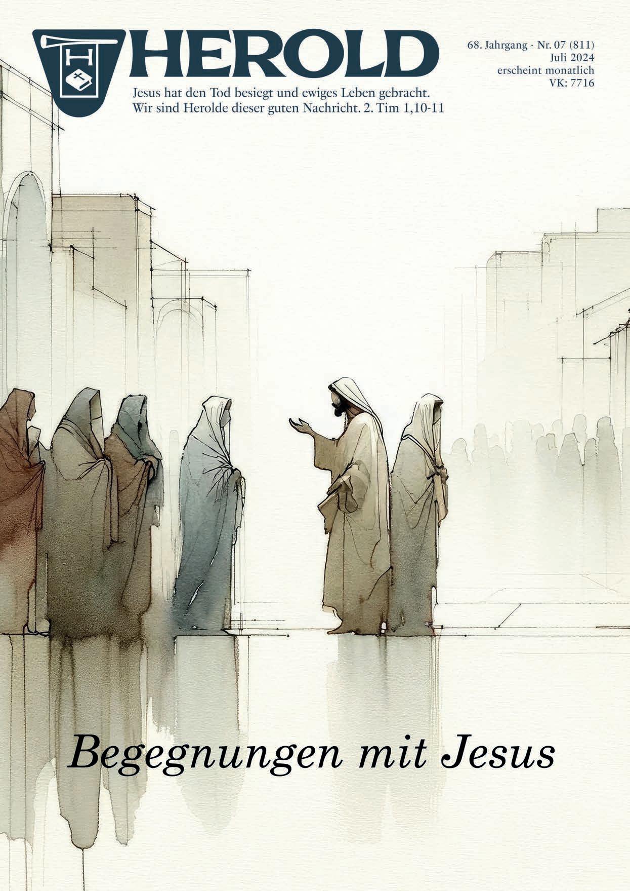 Lieber Herold-Leser, Jesus Christus ist die bedeutendste Person aller Zeiten. Das haben im Jahr 2013 die beiden Professoren Steven Skiena und Charles Ward Mittels einer quantitativen Analyse herausgestellt. Sie haben die Ergebnisse von Wikipedia, Google-Rankings und News Feeds analysiert, um eine Rangliste von mehr als tausend historischen und prominenten Persönlichkeiten zu erstellen – von Elvis Presley über Beethoven, von Stalin bis zu Königin Victoria. Und als Ergebnis landete Jesus auf Platz 1, gefolgt auf Platz 2 und 3 von Napoleon und William Shakespeare.* Dieses Jahr (2024) hat die Microsoft-Newsseite MSN dieselbe Analyse unter Zuhilfenahme eines Google Analyseprogramms wiederholt. Sie haben eine riesige Ansammlung von Büchern und Texten durchsucht, um festzustellen, welche Persönlichkeit „die größten Spuren in unserem kollektiven Bewusstsein hinterlassen hat“ – kurz: Welche Person hat unser Denken am meisten prägt. Wieder landete Jesus auf Platz 1.** Interessant ist, dass sich unsere (zumindest westliche Gesellschaft) hingegen immer weiter von dem entfernt, wofür Jesus Christus eigentlich steht – von seinen Lehren und von der Überzeugung, dass Jesus die Inkarnation Gottes ist und dass allein in ihm Rettung zu finden ist. Dieser deutliche Widerspruch lässt sich dadurch erklären, dass viele Menschen sich eine eigene Vorstellung von Jesus basteln. Sie wollen selbst definieren, wer Jesus „war“ und wofür er „stand“. Dabei ist die Realität unendlich viel besser als die gebastelte Version. Denn um Jesus wirklich kennen zu lernen, müssen wir uns einfach der Bibel, dem Wort Gottes, zuwenden. Was wir dort von und über Jesus finden, wird nicht nur unser Bild von Jesus prägen, sondern unser ganzes Leben. Schließlich ist es unmöglich, Jesus zu begegnen, und unverändert zu bleiben. Daher möchten wir in dieser Herold-Ausgabe auf drei Begegnungen eingehen, die verschiedene Männer und Frauen mit Jesus hatten – Begegnungen, die das Leben und die Welt dieser Menschen vollkommen erneuert haben. Wir möchten dich dabei ermutigen und möchten dir helfen, deinen Blick und dein Vertrauen neu auf Jesus Christus zu lenken. Er ist herrlicher, als wir uns je vorstellen können.