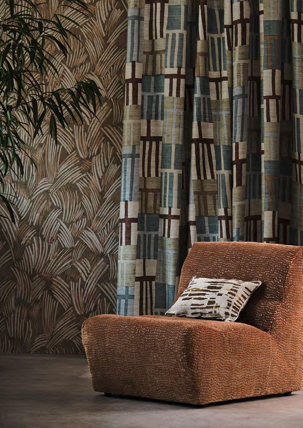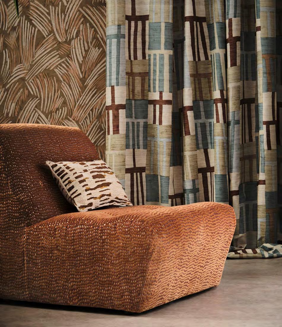 INSPIRED BY THE EARTH’S NAT URAL FORMS AND THE ARTISTIC PAT TERNING TH AT EMERGES FROM N ATURE, DEFINED MOMENTUM IS A DISTINC T, U LTRA-VERS AT ILE FABRIC AND WALLPAPER COLLECTION FOR AW25.