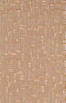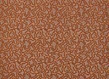 Created in the studio on a suede ground, Crater was designed by masking areas, then using a sponge to create a relief effect in a large-scale geometric pattern. Stoney tones suit this vinyl design.