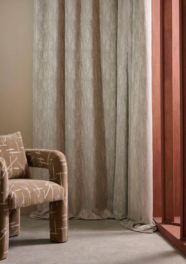 Special hand-selected yarns have been woven with intricate techniques for an outstanding collection of weaves that perfectly suit modern interiors. Fabr ics designed and curated for this collection offer a sleek look with a mix of matt and shine for layering.