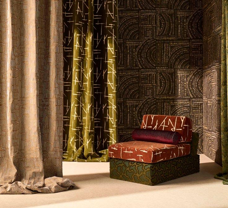 EXPRESSIVE DESIGNS AND CURATED PALETTES THROUGH LUXURY FABRIC AND WALLPAPER.