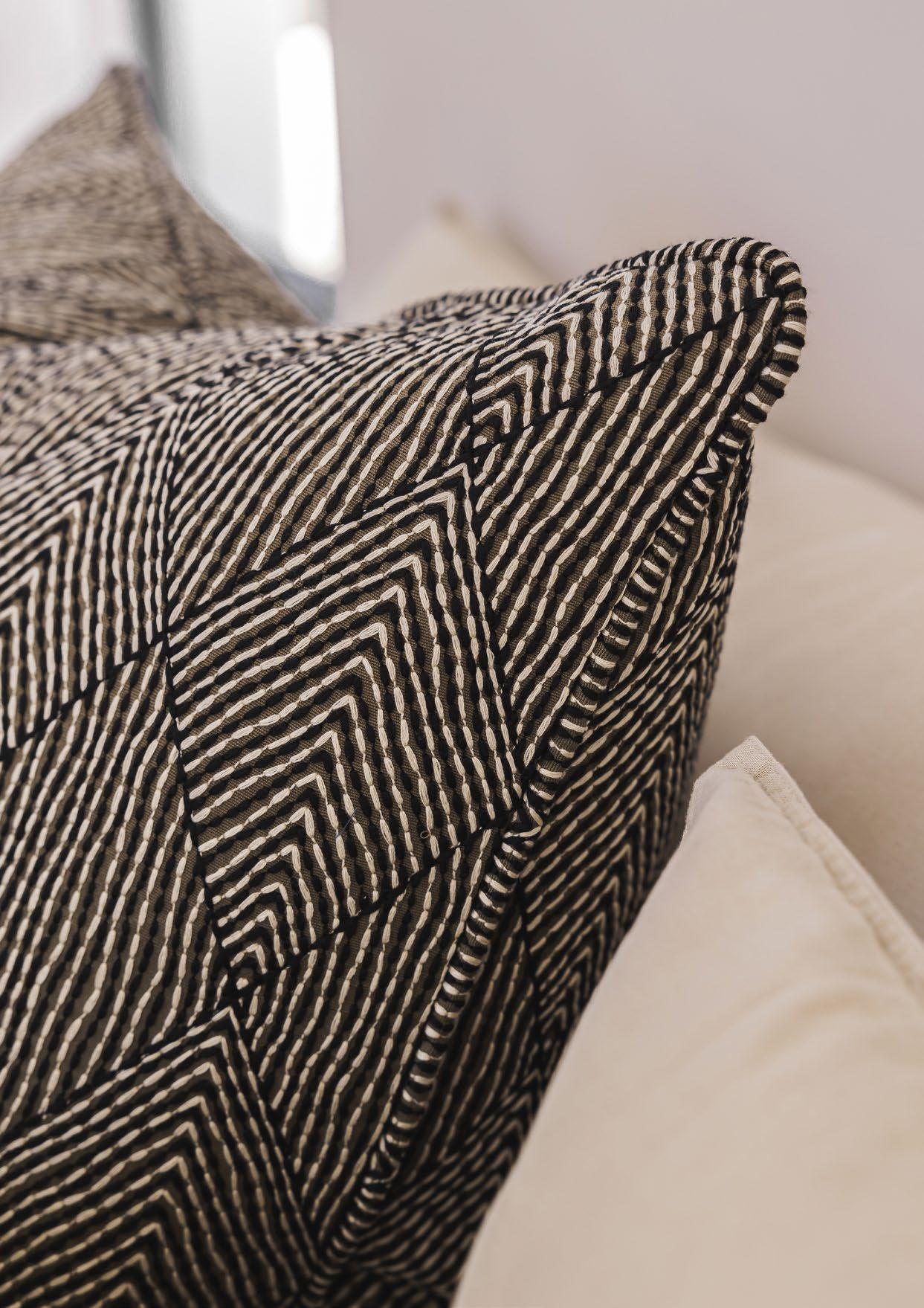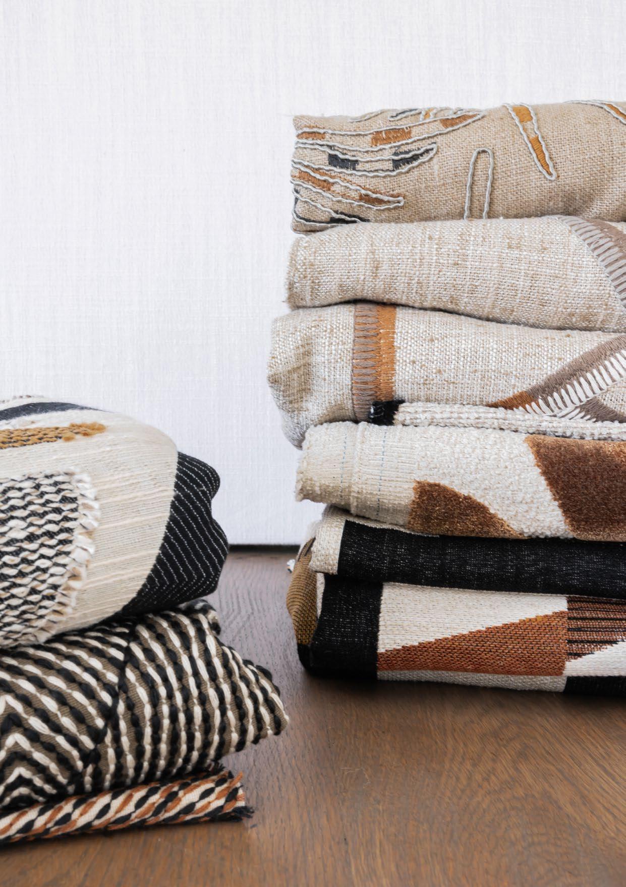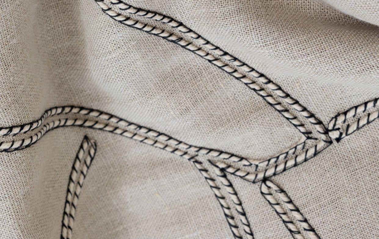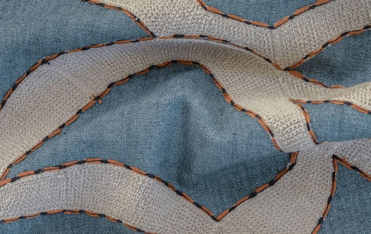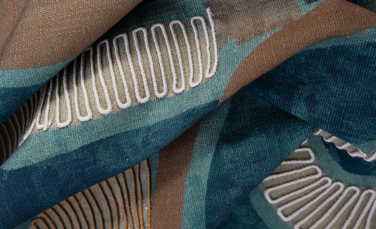 Amapondo features embroidered fabric that brings ancestral rhythm to modern spaces with its two designs, Ayanda and Mbali, which are embroidered on a viscose-linen blend.