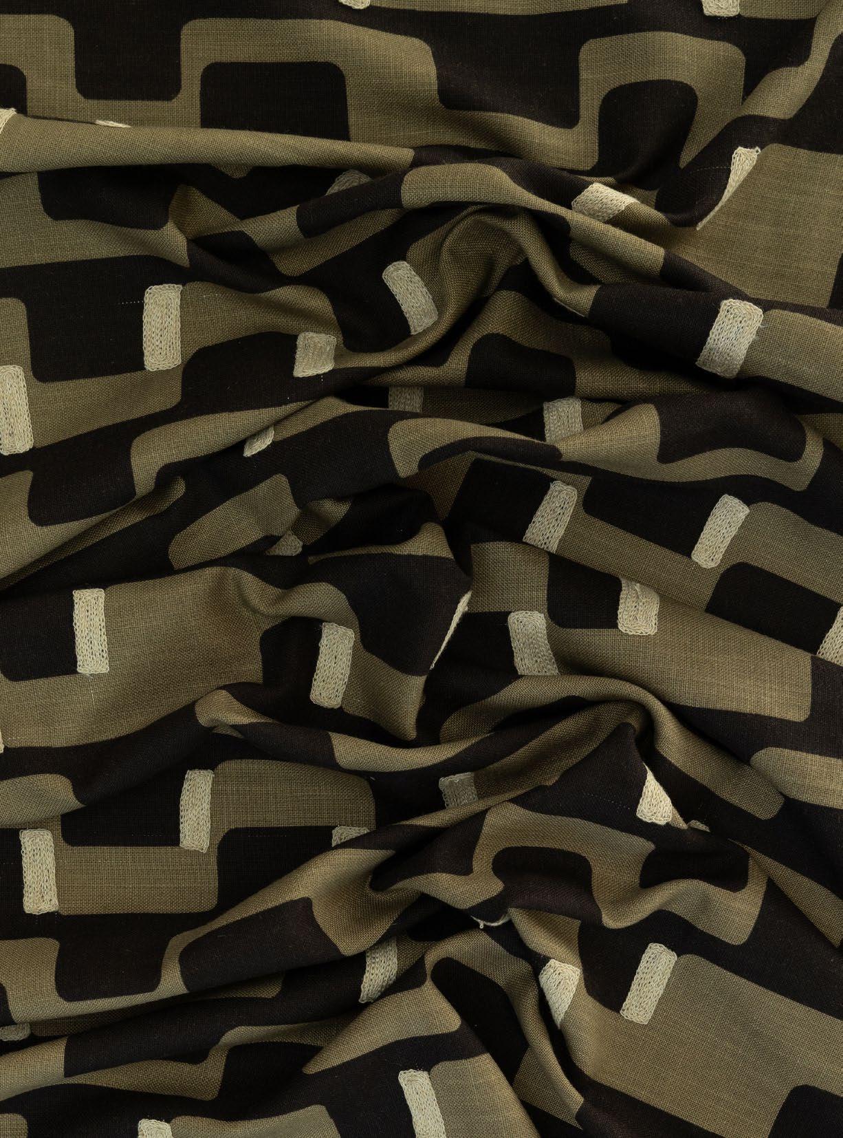 Printed width: 140cm. Base: 70% viscose, 30% linen. Embroidery: 60% polyester, 25% cotton, 15% linen. Iron on reverse. Drip-dry. Down-the-roll pattern. Suitable for curtaining and decorative purposes. Dye-lot variations may occur.