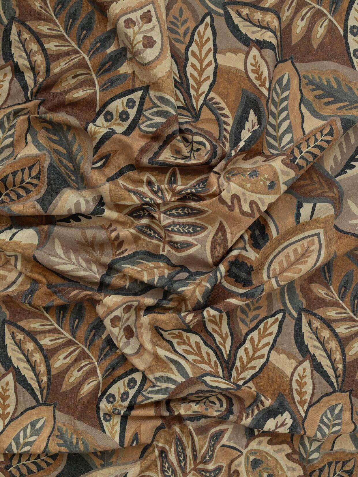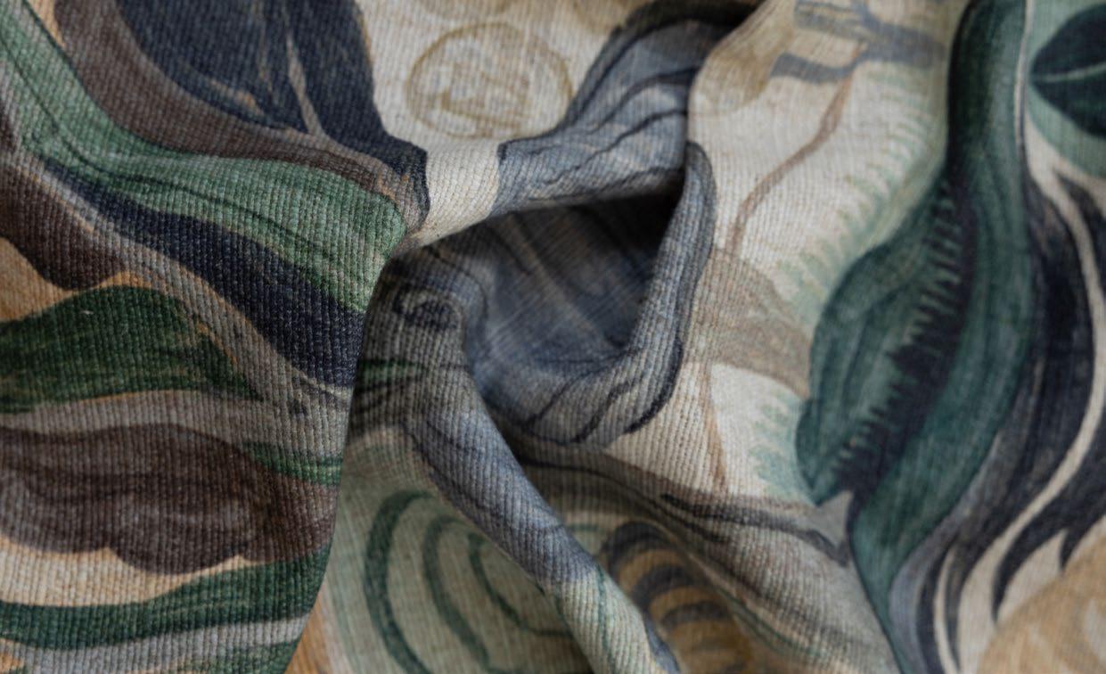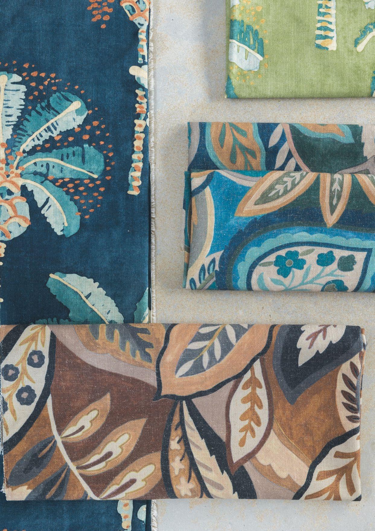 Part of our Singles Club offering, Mangrove comprises two evocative designs: Madagascar, an elegant leafy print in neutral tones, printed on a 100% linen base, and Baobab, which has an African floral flavour and is printed on a poly-linen-viscose base cloth.