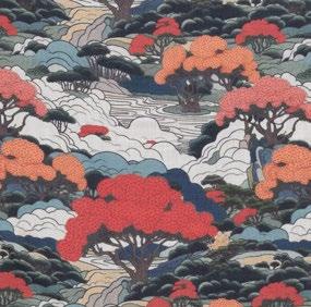 Maiko, which features Japanese geishas, along with Sansui, a recognisable Eastern landscape design, and Sayonara, a coordinate of stylised blossoms, come together to form this appealing multipurpose home décor capsule. All the designs are printed on a 280cm-wide viscose-linen base cloth, and form part of our Singles Club offering.